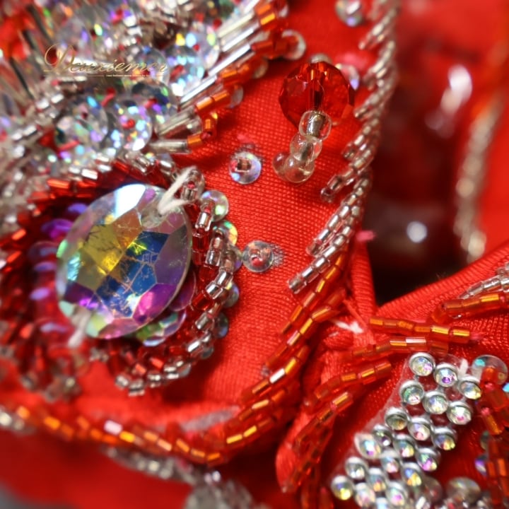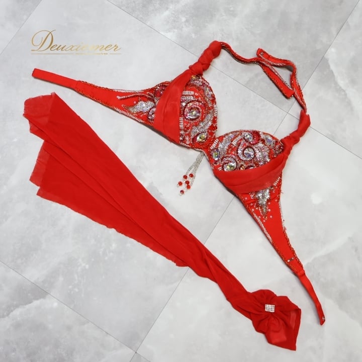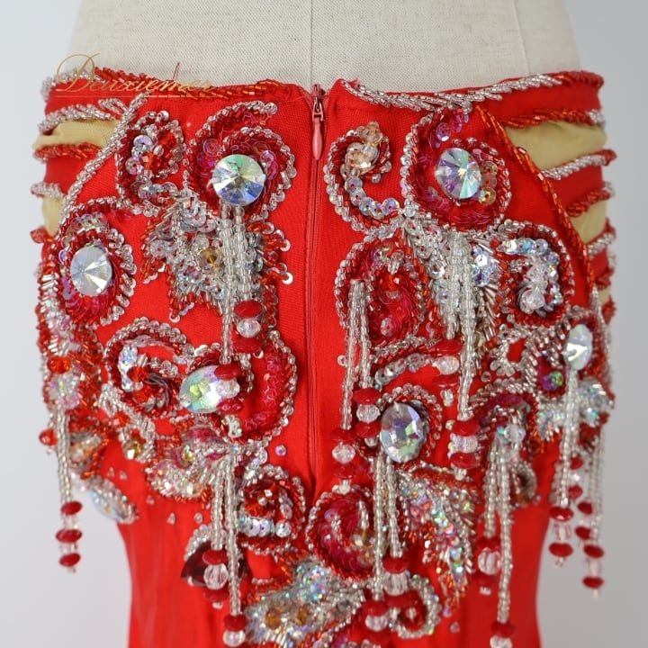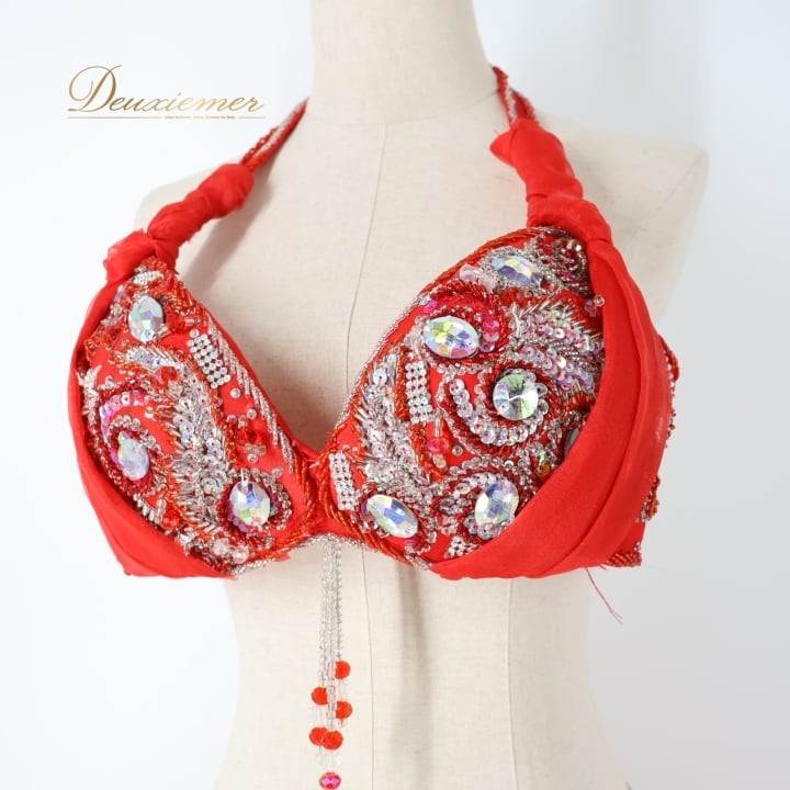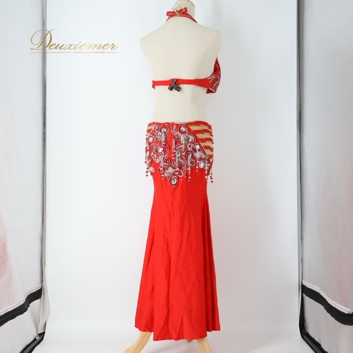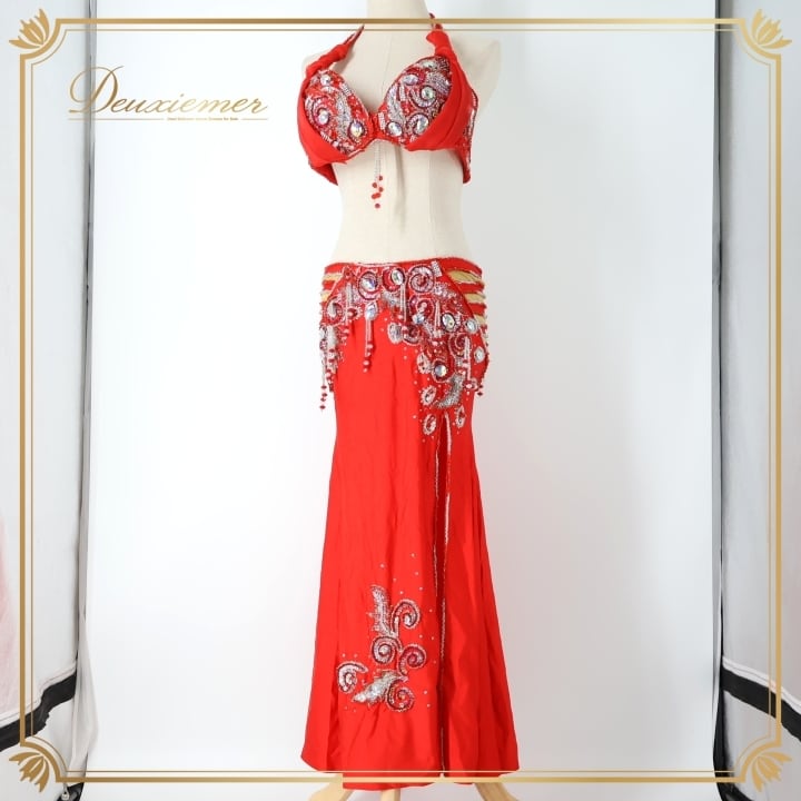 #ベリーダンス #オリエンタル衣装 #ダンスコスチューム #レッドドレス #アーム飾り #豪華装飾 #ファッション #ダンスウェア #女性用衣装 #スカート #スリットスカート #特別な日 #イベント衣装 #ダンスパフォーマンス #異文化交流 #楽しい時間 #パーティー #コスプレ #ビーズ装飾 #ENUTSU