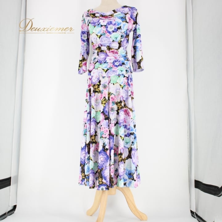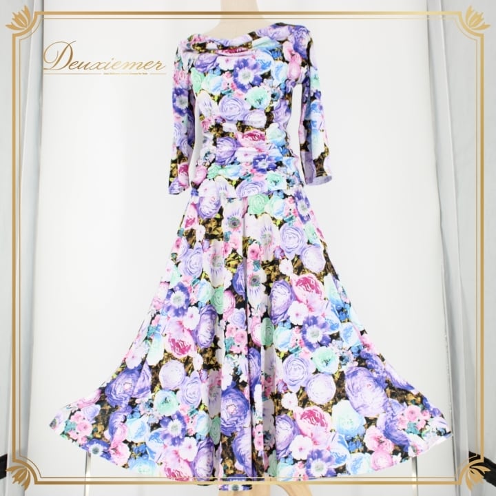 #社交ダンス #ダンス衣装 #ダンスウェア #ファッション #花柄 #ブラック #パープル #ピンク #ブルー #グリーン #ホワイト #ストレッチ #ウエストゴム #ポリエステル #女性用トルソー #イベント衣装 #パーティー #社交ダンス衣装 #ダンスショー #ENUTSU