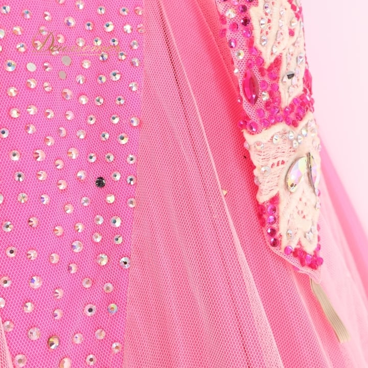 社交ダンス 衣装 スタンダード ドレス ワンピース スタンダードドレス ピンク デモ 競技 ダンス パーティ 発表会 綺麗 高級感 かわいい 明るい ピンク系 豪華 おしゃれ フォーマル 華やか