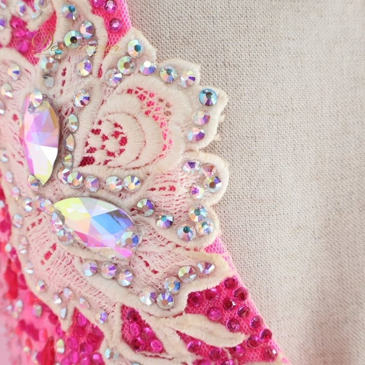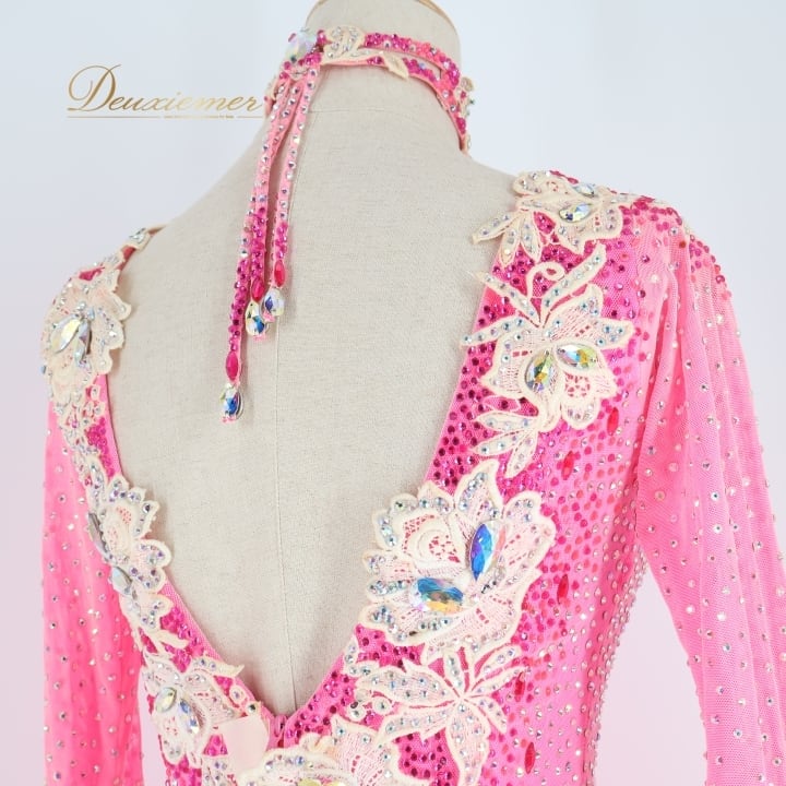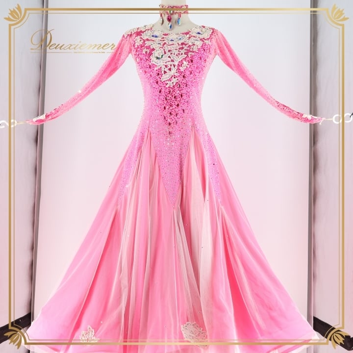 #社交ダンス #ダンス衣装 #ダンスドレス #ワンピース #女性用ドレス #ピンクドレス #豪華な衣装 #石飾り #可愛いドレス #スカート重ね #ダンスファッション #レオタード #背面ファスナー #胸パッド #トルソー #ダンススタイル #おしゃれ #ダンスイベント #社交ダンス衣装 #ENUTSU