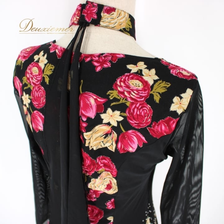 #社交ダンス #ダンス衣装 #ダンスドレス #プリマブティック #花柄デザイン #ブラック #マゼンダピンク #ファッション #ダンスファッション #衣装 #グラマラス #エレガント #パフォーマンス #イベント #ウエスト強調 #ダンススタイル #ポリエステル #着心地 #伸縮性 #ENUTSU