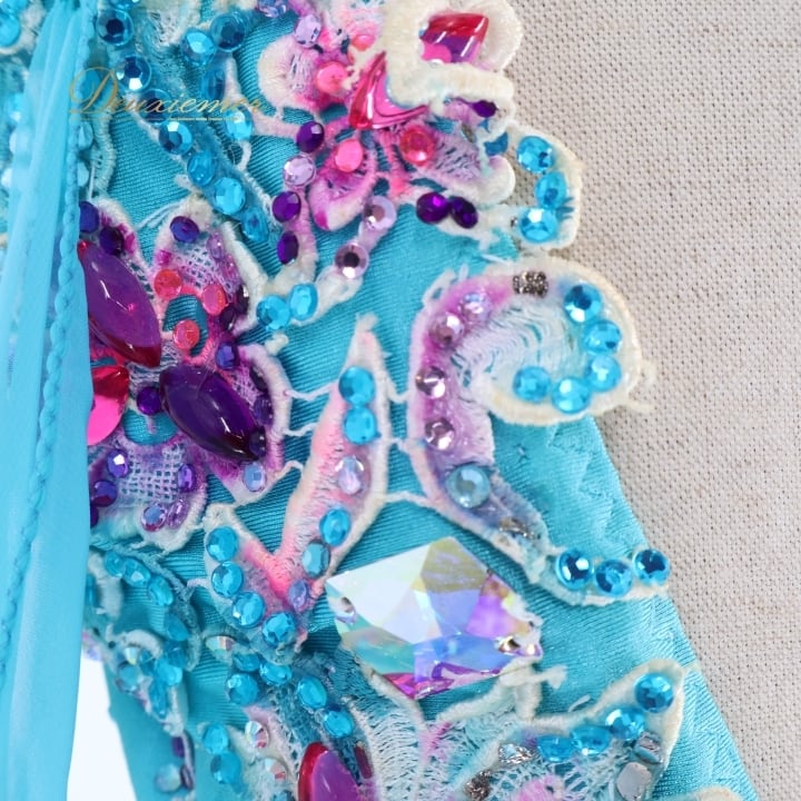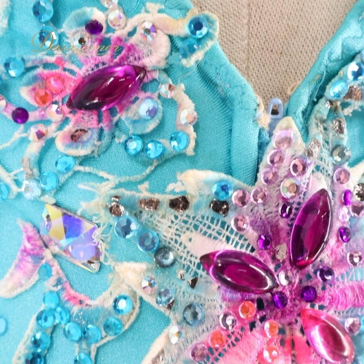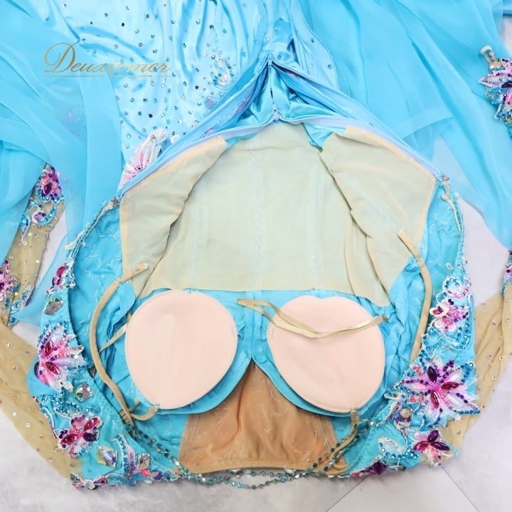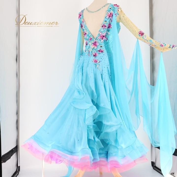 #社交ダンス #ダンス衣装 #ワンピース #ドレス #華やか #ウォーターブルー #ピンク #光沢感 #スカート #重ね着 #ファッション #女性用トルソー #ダンススタイル #ファッションショー #パフォーマンス衣装 #カスタムサイズ #伸縮性 #胸パッド #おしゃれ #ENUTSU