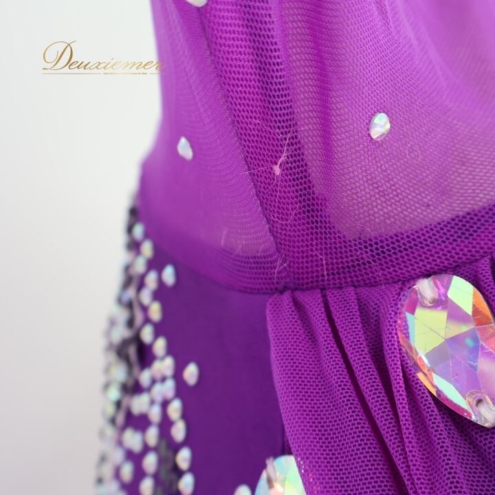 社交ダンス 衣装 スタンダードドレス ワンピース ドレス スタンダード デモ 競技 フロート レース フリル 花柄 パーティ 発表会 紫 forever フォーエバー パープル系 スタイル おしゃれ フォーマル スカート ふんわり パープル ダンス イベント 可愛い 上品 競技用 ドレッシー