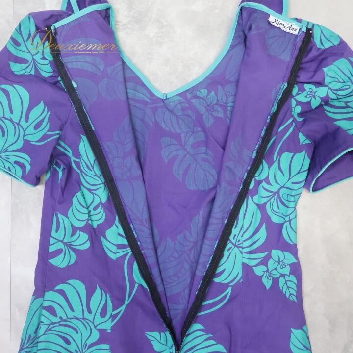 #フラダンス #衣装 #ドレス #ワンピース #パープル #グリーン #アシンメトリー #ポケット付き #背面ファスナー #モダンダンス #ダンス衣装 #女性用トルソー #ターン・ドレス #パフォーマンス #ステージ衣装 #ハワイアン #エレガント #ファッション #コスチューム #ENUTSU