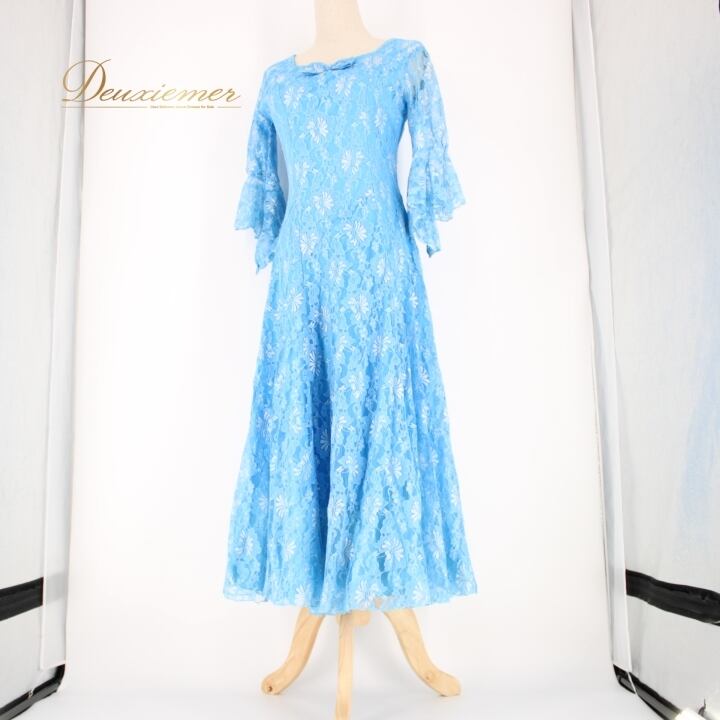 #社交ダンス #ダンスドレス #プリマブティック #ライトブルー #花柄レース #ファスナー #伸縮性 #ドレスコーデ #ダンス衣装 #女性用トルソー #パーティードレス #おしゃれ #ファッション #リボンアクセント #ダンスファッション #ダンス衣装コーデ #スカート #大人かわいい #ウェア #ENUTSU