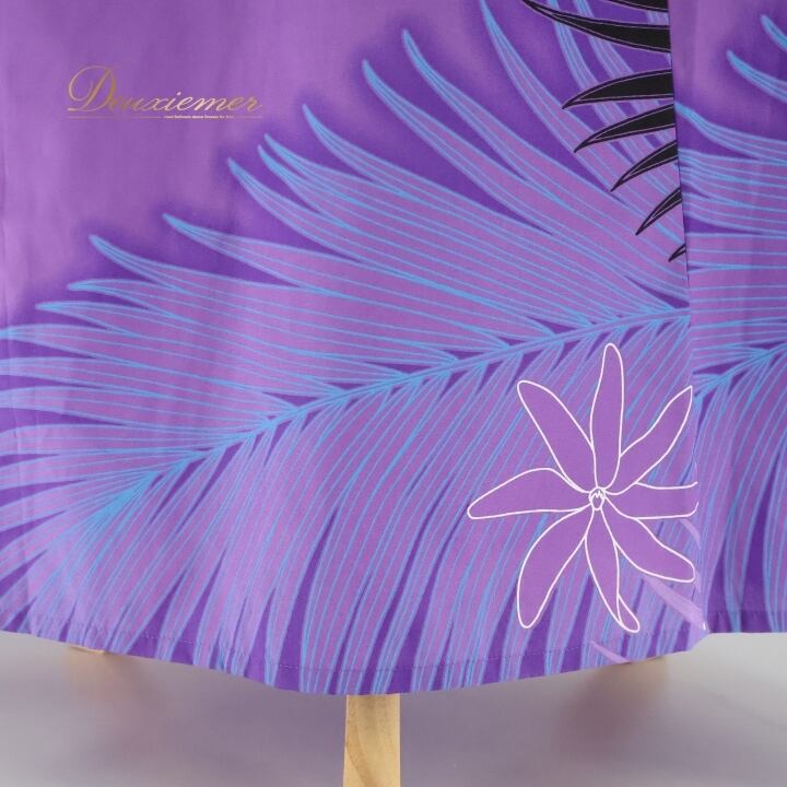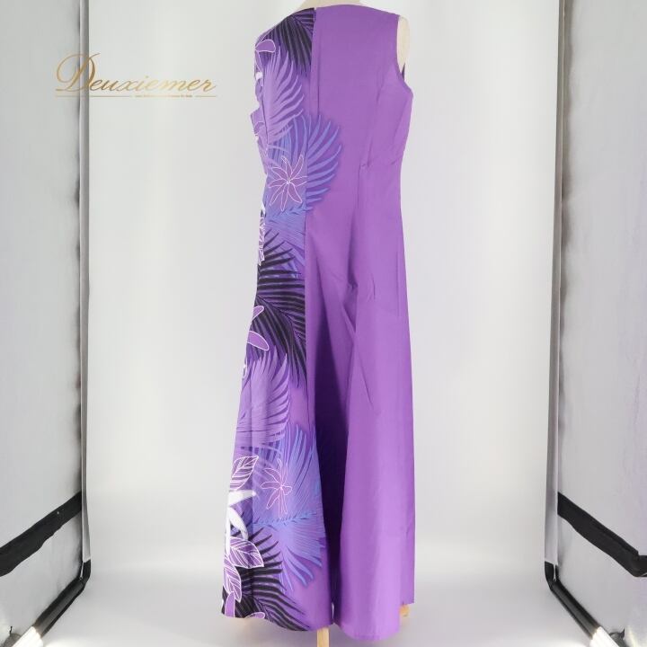 フラダンス 衣装 ワンピース ドレス マーメイドライン エムエムジェイ パープル系 MermaidLine MMJ 日本製 ノースリーブ バナナリーフ柄 ティアレ柄 かわいい 華やか 鮮やか ハワイアン アロハ フラ ダンス レッスン 練習 エレガント 袖なし