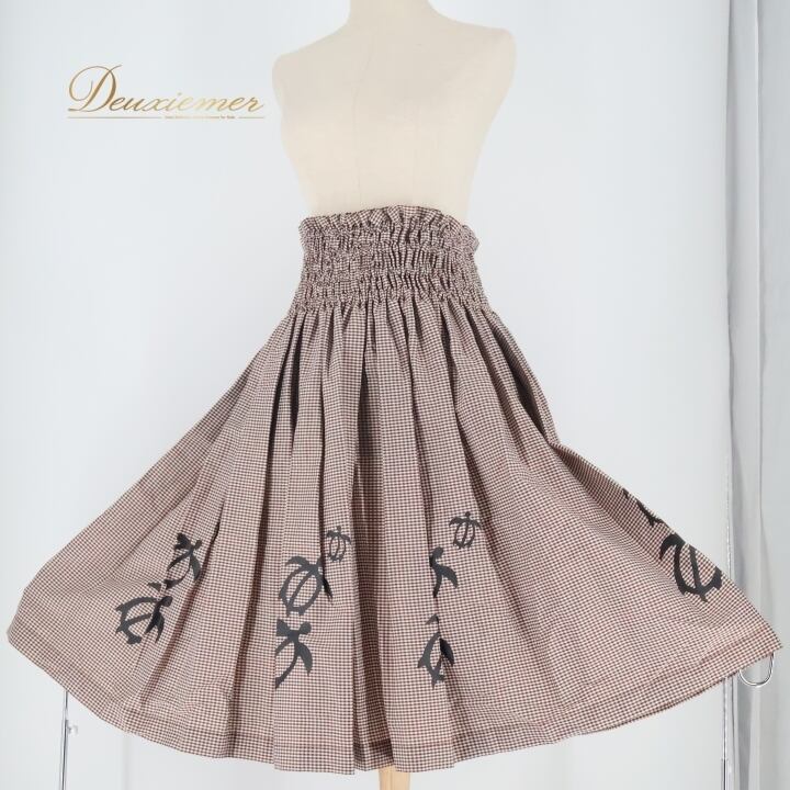 フラダンス 衣装 パウスカート ブラウン系 HULA GIRLS チェック柄 ホヌ柄 ハワイアン アロハ フラ ダンス シングル スカート ホワイト系 かわいい おしゃれ 上品 大人っぽい 華やか ふんわり シンプル フラ レディース ダンス衣装 カジュアル リゾート シンプルデザイン