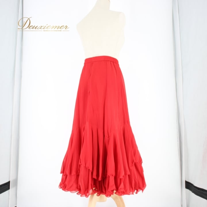 #社交ダンス #ダンス衣装 #スカート #ダンスファッション #赤色スカート #二重スカート #ボリューム #優雅な動き #ポリエステル #ファスナー仕様 #伸縮性 #ダンススタイル #トルソー使用 #女性用トルソー #コーディネート #ダンスコスチューム #ダンスパフォーマンス #社交ダンススカート #ダンス衣装コレクション #U_NA #ENUTSU