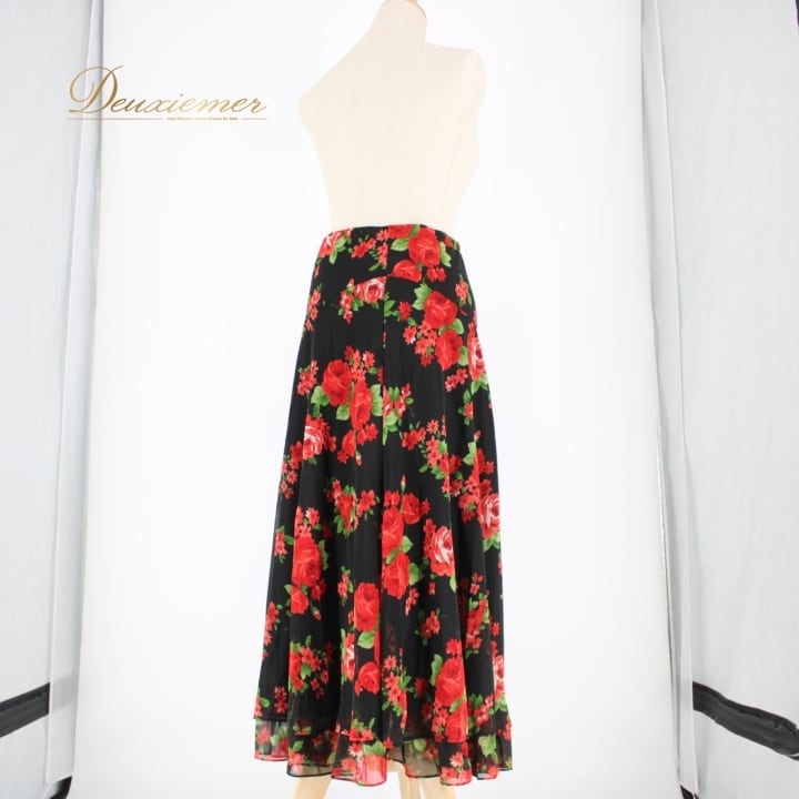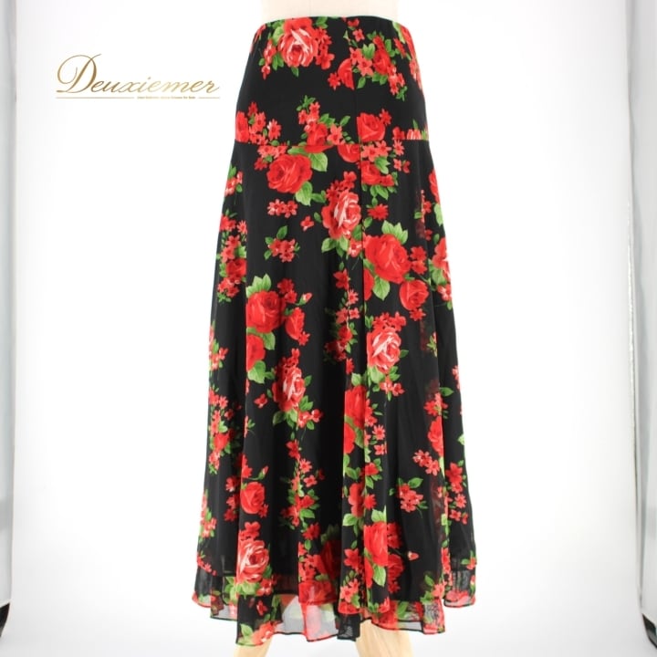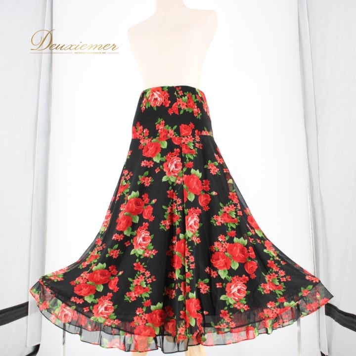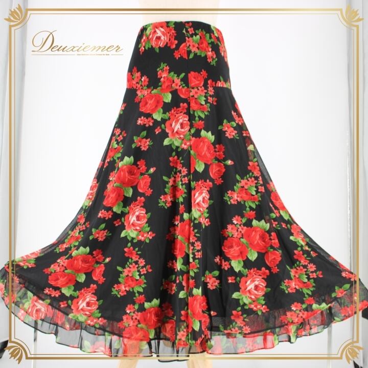 #社交ダンス #ダンス衣装 #ダンススカート #ダンスファッション #花柄 #ポリエステル #ウエストゴム #伸縮性 #ブラックレッドグリーン #トルソー #女性用トルソー #ダンススタイル #イベント衣装 #パーティードレス #ステージ衣装 #ダンスパフォーマンス #ファッション #おしゃれ #コスチューム #ENUTSU