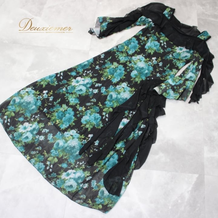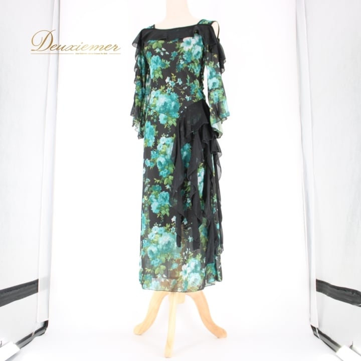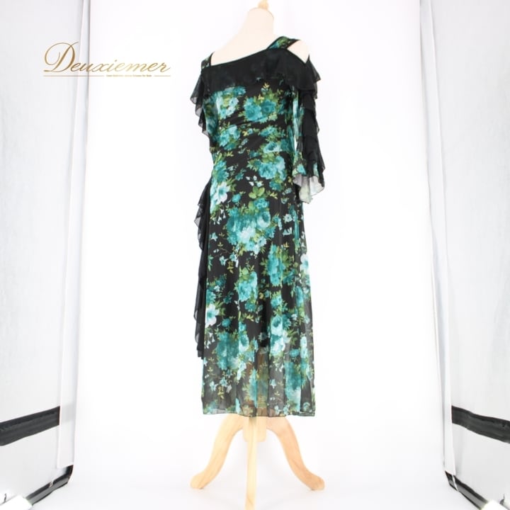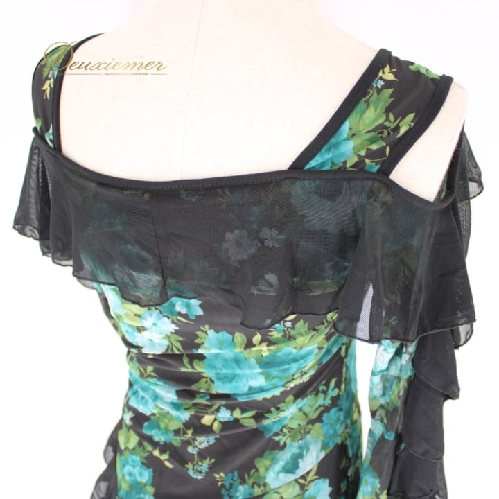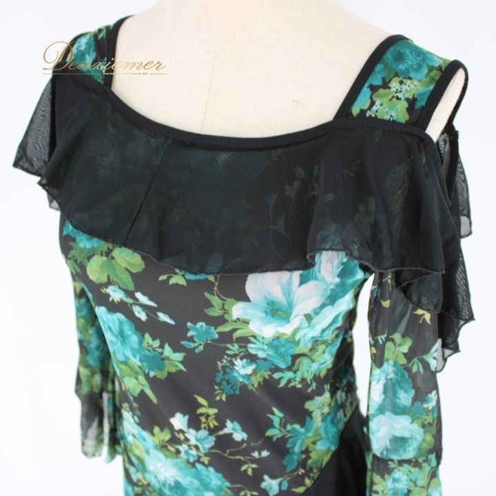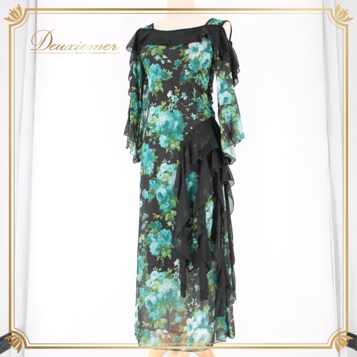 #社交ダンス #ダンスドレス #互助会 #衣装 #花柄 #グリーン #ブラック #女性用 #おしゃれ #レディースファッション #ダンスイベント #モデル #フォーマル #ポリエステル #ポリウレタン #伸縮性 #ダンスコーデ #春夏ファッション #文化祭 #ENUTSU