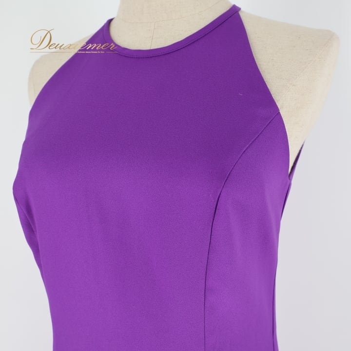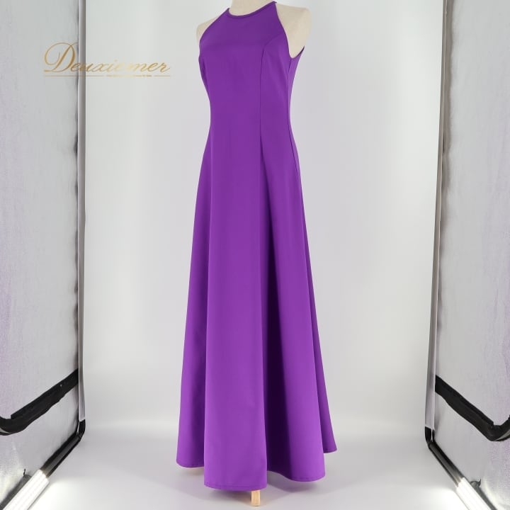 フラダンス 衣装 ワンピース ドレス マウナロア パープル系 Maunaloa ワンカラー ノースリーブ ホルターネック 無地 シンプル 肩出し セクシー 上品 大人 かわいい 華やか 鮮やか ハワイアン アロハ フラ ダンス レッスン 練習 エレガント