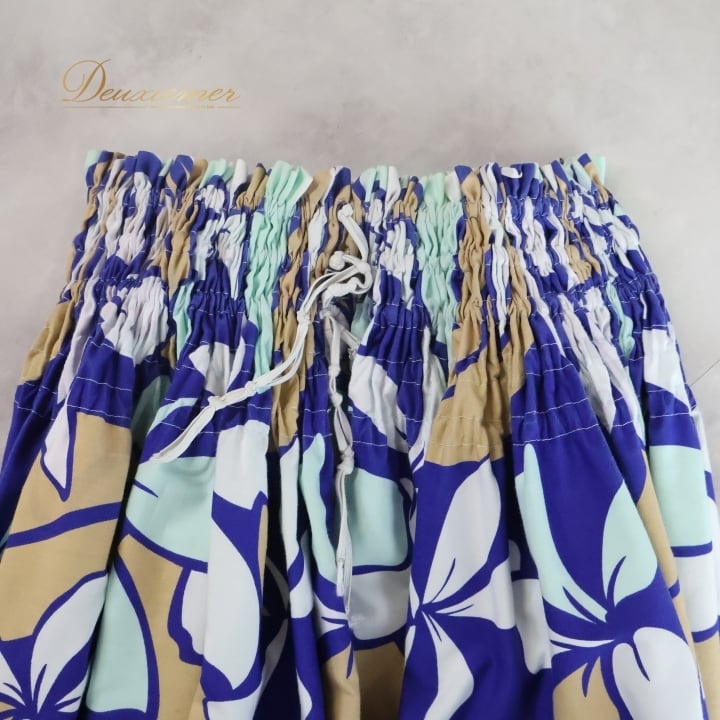 #フラダンス #パウスカート #ハワイアンプリント #日本製 #CoCoEmily #ブルー #ウエストゴム #ダンス衣装 #ポリエステル #綿 #かわいい #トルソー #女性用衣装 #サマーコーデ #おしゃれ #ダンスファッション #ハワイアンスタイル #フラダンス衣装 #ウェア #ENUTSU