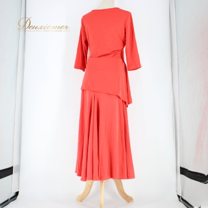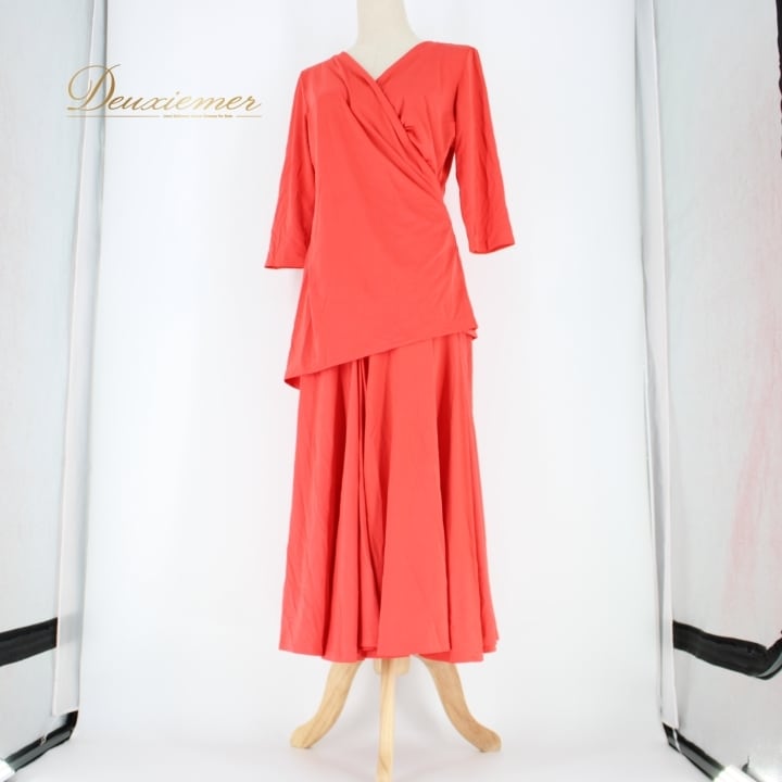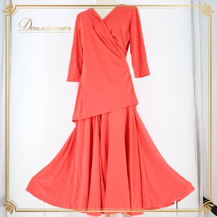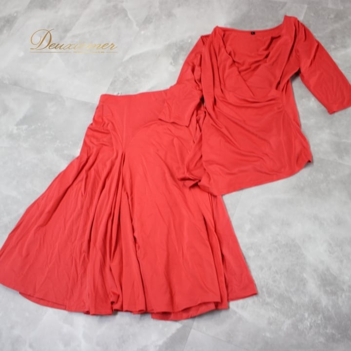 #社交ダンス #ダンス衣装 #トップス #スカート #セットアップ #バーミリオン #ポリエステル #ポリウレタン #伸縮性 #ウエストゴム #ダンスファッション #社交ダンス服 #ダンスイベント #女性用トルソー #サイズL #サイズLL #ファッションコーデ #ストリートファッション #ダンススタイル #ENUTSU