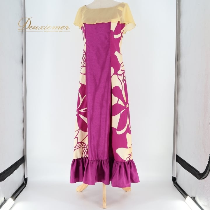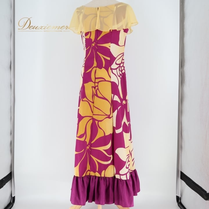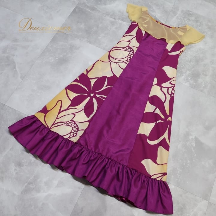 #フラダンス #フラダンス衣装 #ワンピース #ドレス #パープル #イエロー #シースルー #衣装 #ダンス衣装 #華やか #パーティー衣装 #ハワイアン #トロピカル #女性用 #おしゃれ #夏服 #カラフル #ファッション #コスチューム #ENUTSU