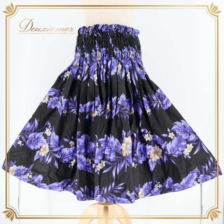 フラダンス 衣装 パウスカート ブラック系 パープル系 シングル モンステラ柄 ハイビスカス柄 葉っぱ柄 花柄 かわいい 華やか 鮮やか 大人 ハワイアン アロハ ハワイアンプリント フラ ダンス レッスン 練習 おしゃれ カジュアル