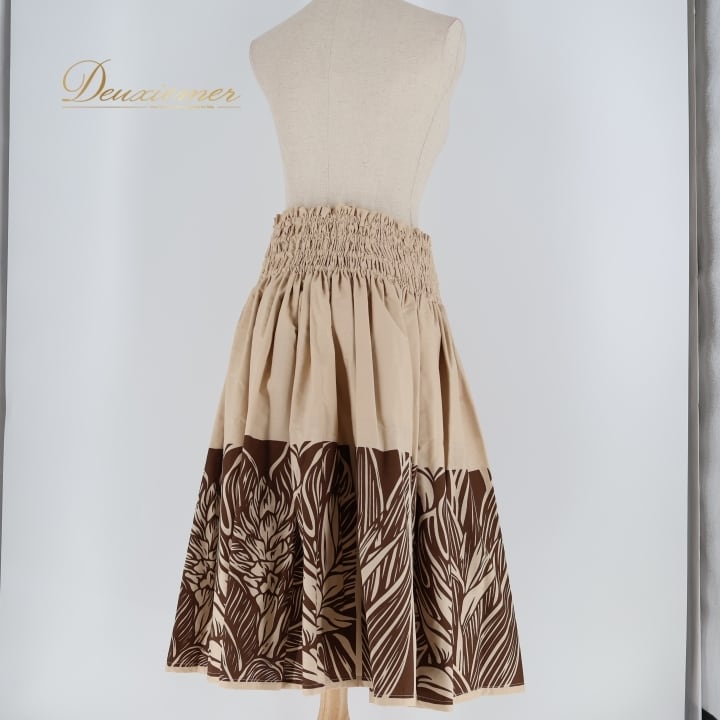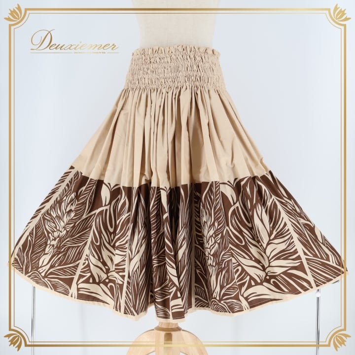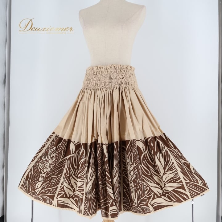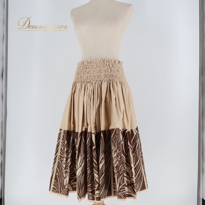 #フラダンス #フラダンス衣装 #パウスカート #日本製 #大人っぽい #シンプルデザイン #ベージュ #ブラウン #ウエストゴム #伸縮性 #ハワイアン #ダンス #衣装 #ポリエステル #綿 #トルソー #女性用 #ファッション #コーディネート #ENUTSU