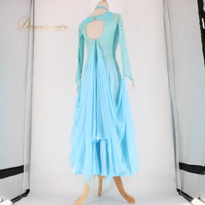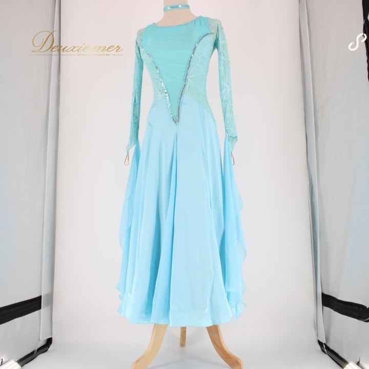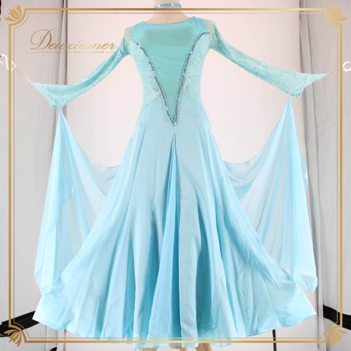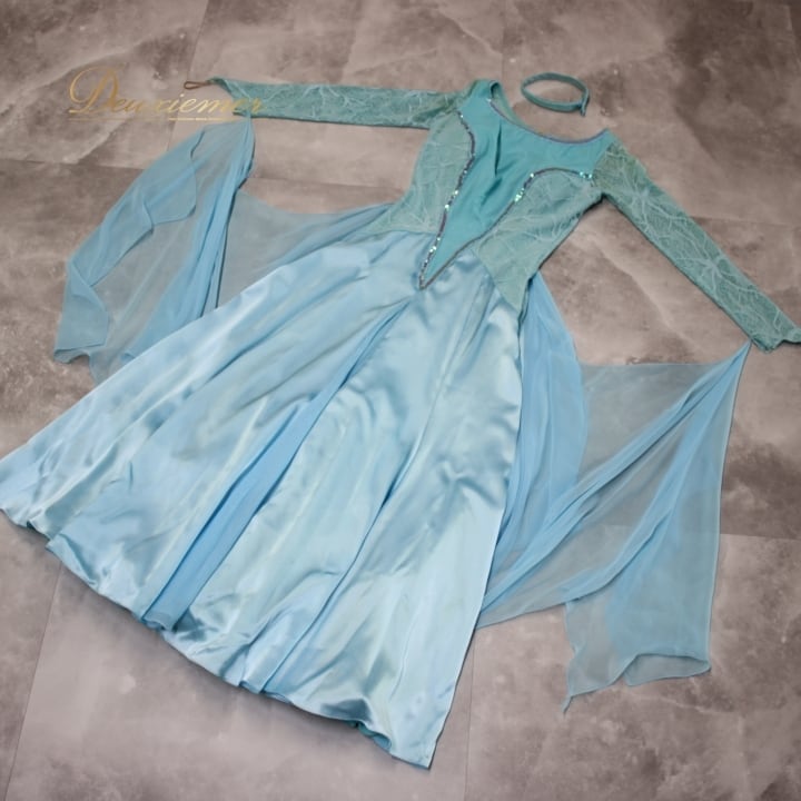 #社交ダンス #ダンス衣装 #ドレス #インザムード #日本製 #ライトブルー #フロートデザイン #ファスナー仕様 #軽やか #伸縮性 #女性用 #ダンスファッション #ダンススタイル #エレガント #舞台衣装 #秋冬コレクション #ダンスウェア #おしゃれ #パーティードレス #ENUTSU