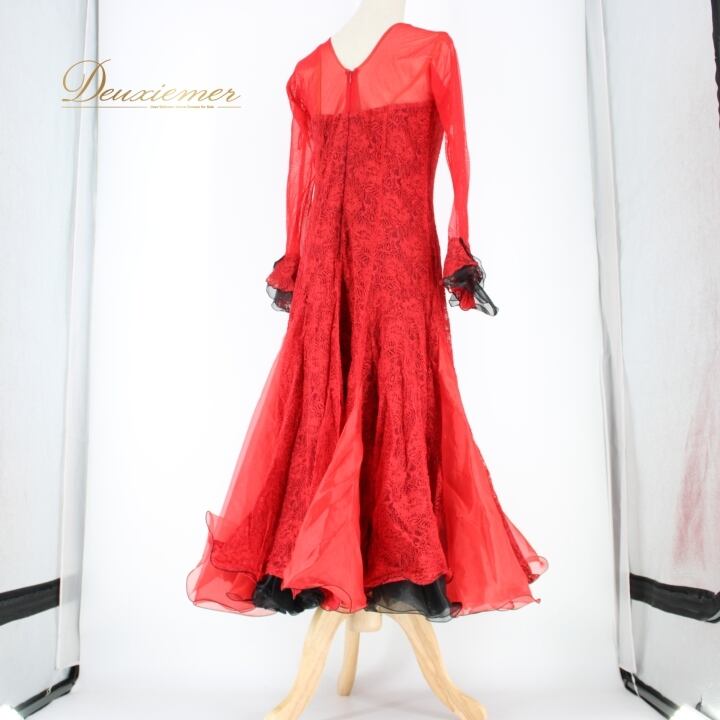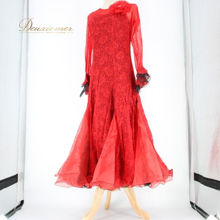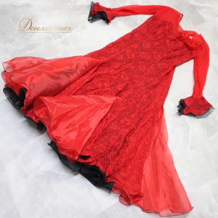 社交ダンス 衣装 スタンダード ドレス ワンピース パーティ衣装 ステージ衣装 オールシーズン 赤 黒 レッド系 ブラック系 SEKINE セキネ レース 鮮やか 高級感 洗練された デザイン コサージュ 取り外し可 ボリューム感 動きやすい サイズ調整 可愛い 伸縮性 日本製 おしゃれ 目立つ 公式 パフォーマンス ダンスウェア レディース 秋冬 おすすめ プラスサイズ お祝い クリスマス 春夏