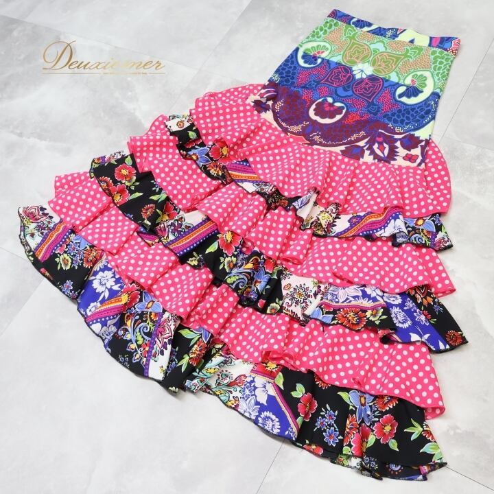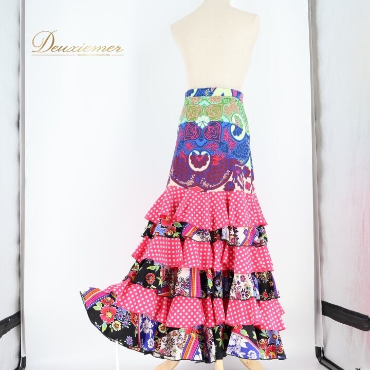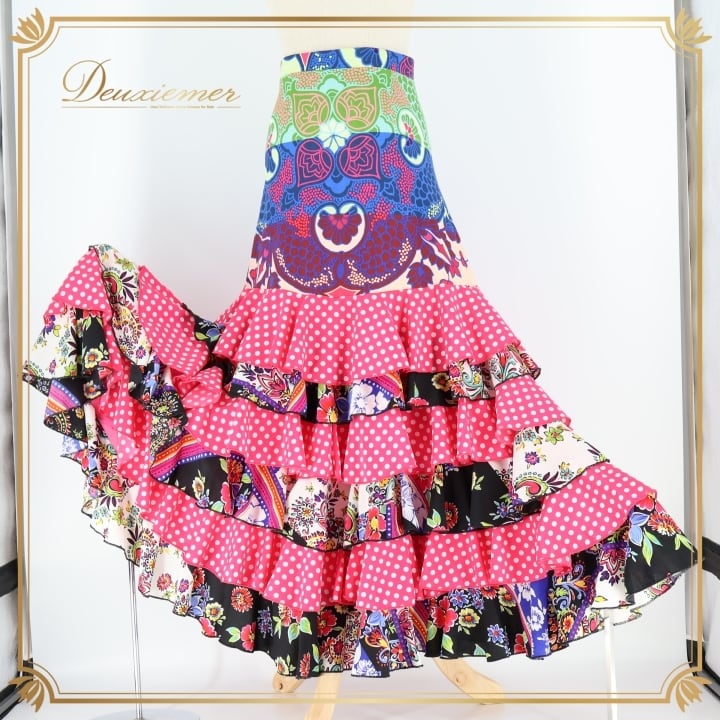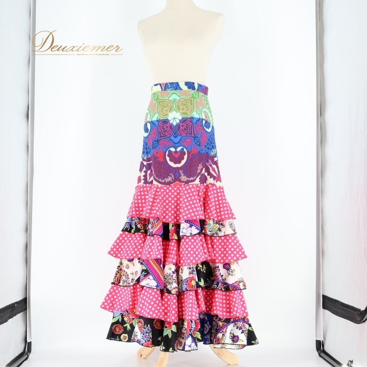 #フラメンコ #衣装 #ファルダ #スカート #ダンス衣装 #レイリーナ #フラメンコスカート #華やか #パーティー #舞台衣装 #ウエストゴム #段々ボランテ #多様な柄 #コスチューム #ダンス #女性用トルソー #ファッション #表現 #トレンド #ENUTSU