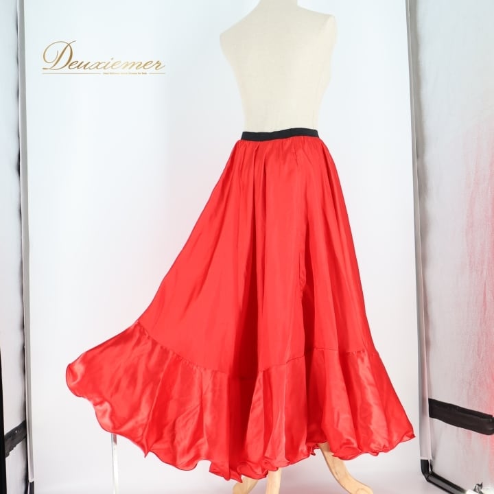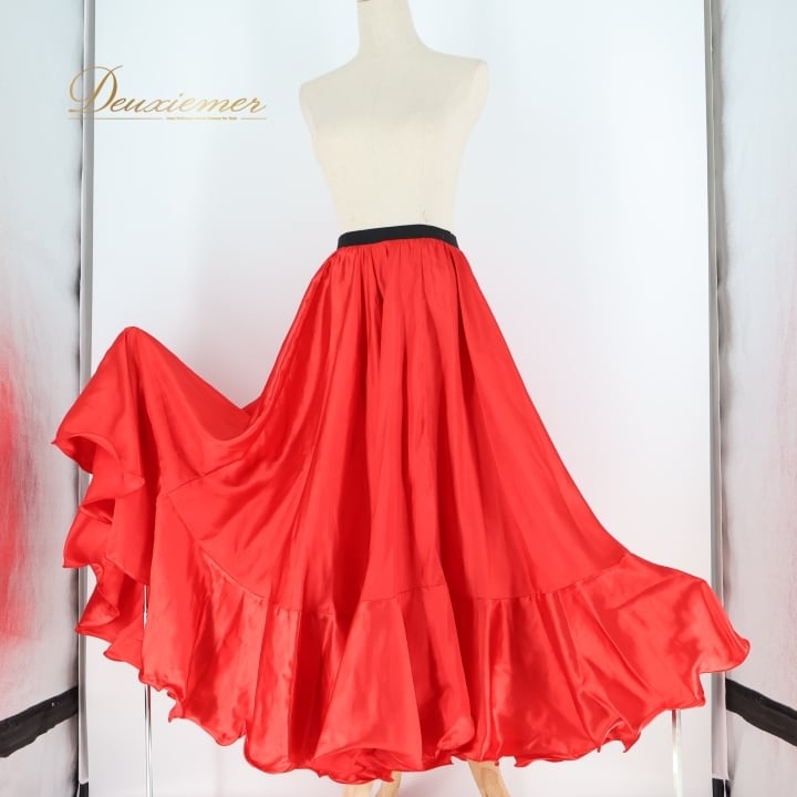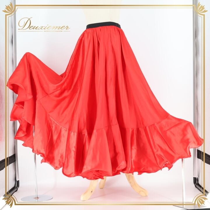 フラメンコ 衣装 ペチコート スカート ファルダ emika エミカ 無地 光沢 軽い ダンス パーティ 発表会 ブラック系 レッド系 軽量 薄手 光沢生地 ステージ衣装 舞台用 コスチューム レディース ファッション ダンス発表会 フラメンコ衣装