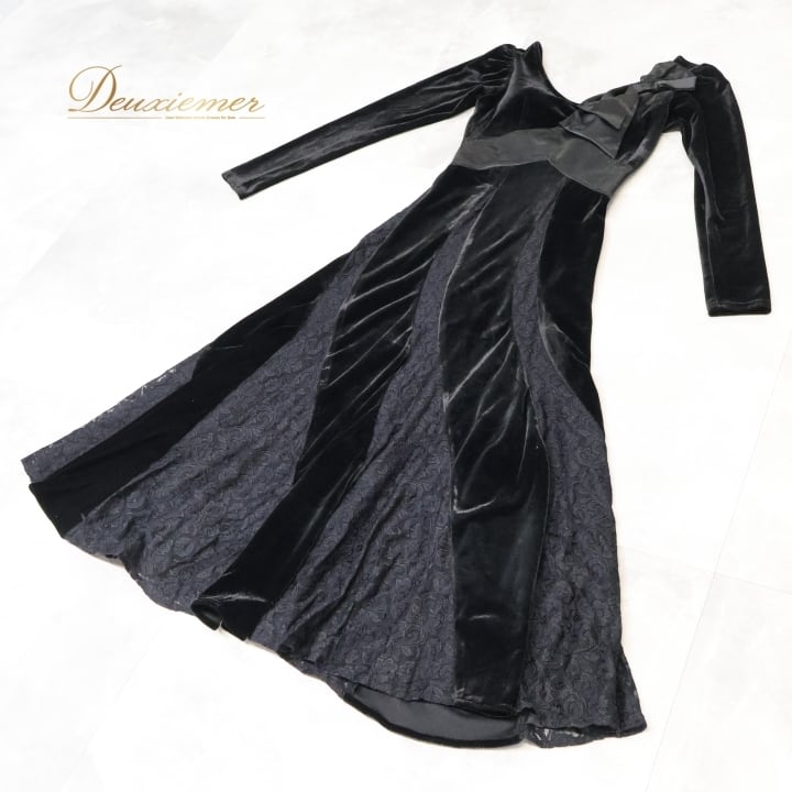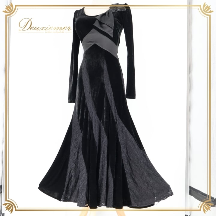 社交ダンス 衣装 チャコット Chacott ワンピース ドレス 黒 レース ベロア 高級感 綺麗 上品 パーティドレス ブラック系 フォーマル 大人可愛いエレガント デザイン スリム フィット感 シンプル 上品 黒ドレス レディース おしゃれ パーティ ステージ衣装 ロングドレス 社交ダンス衣装
