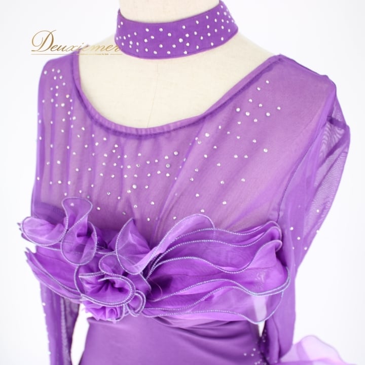 #社交ダンス #ダンスドレス #レイリーナ #バイオレットドレス #ラインストーン #エレガント #ダンス衣装 #パーティードレス #大人の魅力 #ファスナー仕様 #軽やかさ #伸縮性 #フォーマル #チョーカー #ダンスファッション #女性用トルソー #ウエストサイズ #ポリエステル素材 #ダンススタイル #ENUTSU
