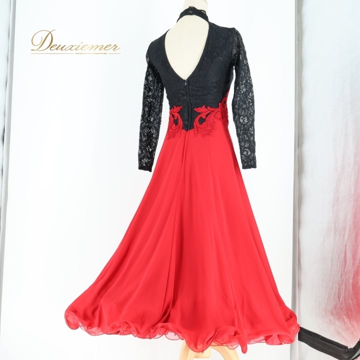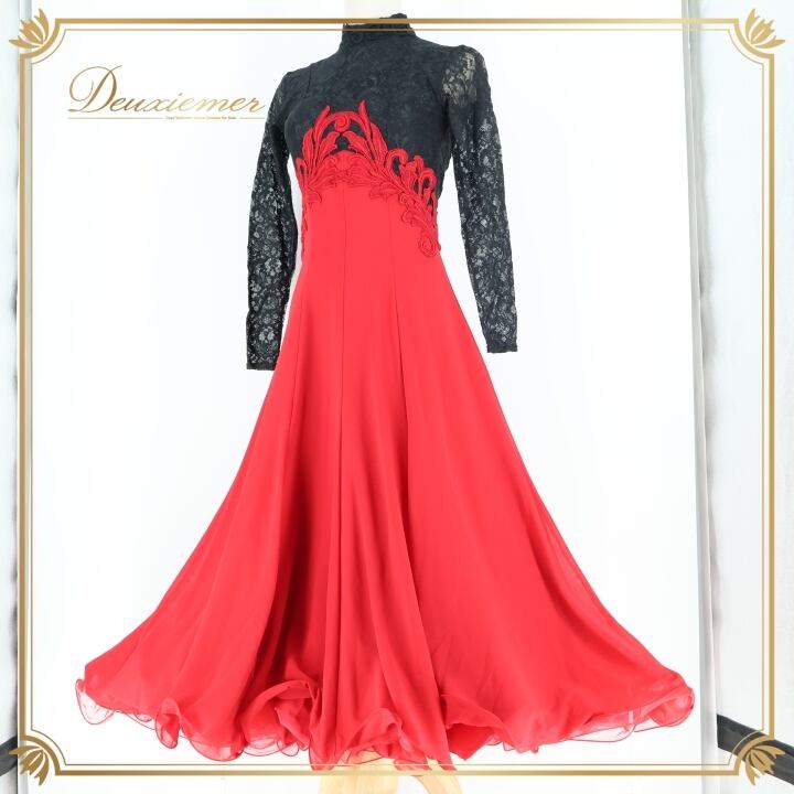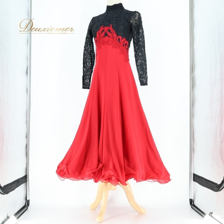 社交ダンス 衣装 Chacott チャコット スタンダードドレス ワンピース ドレス 赤 黒 フリル レース パーティドレス 綺麗 上品 ダンス 発表会 ブラック系 レッド系 フレア スカート モダンダンス エレガント レディース おしゃれ シンプル 日本製