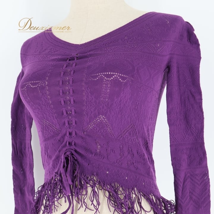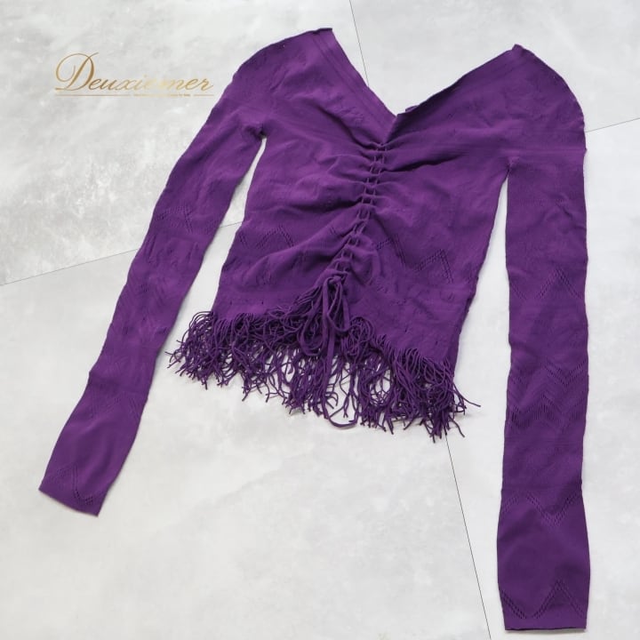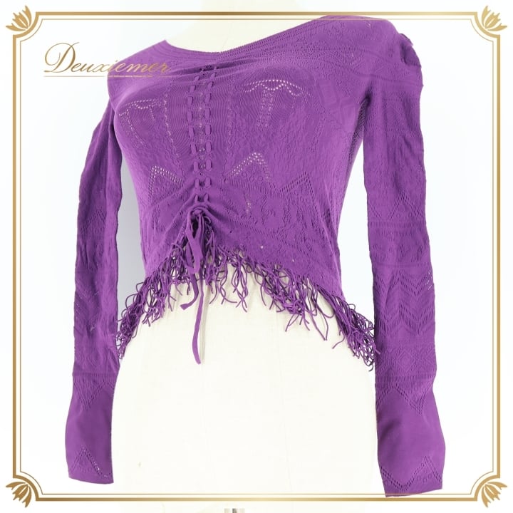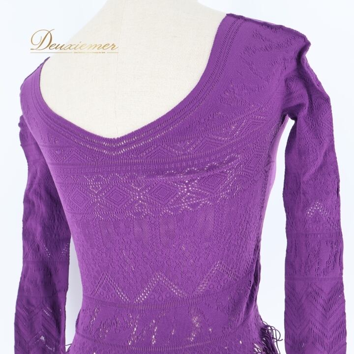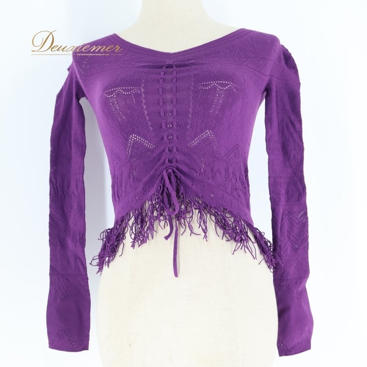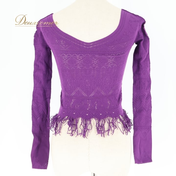 バレエ 衣装 チャコット Chacott ノーソーイングニット トップス レッスン 練習着 社交ダンス 長袖 リボン 紫 かわいい ダンス パープル系 日本製 バレエ トップス ノーソーイングニット ダンス衣装 レッスン着 練習着 社交ダンス用 紫色 可愛い デザイン フリンジ 女性用ファッション ストレッチ素材 日本製