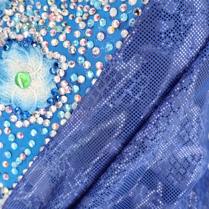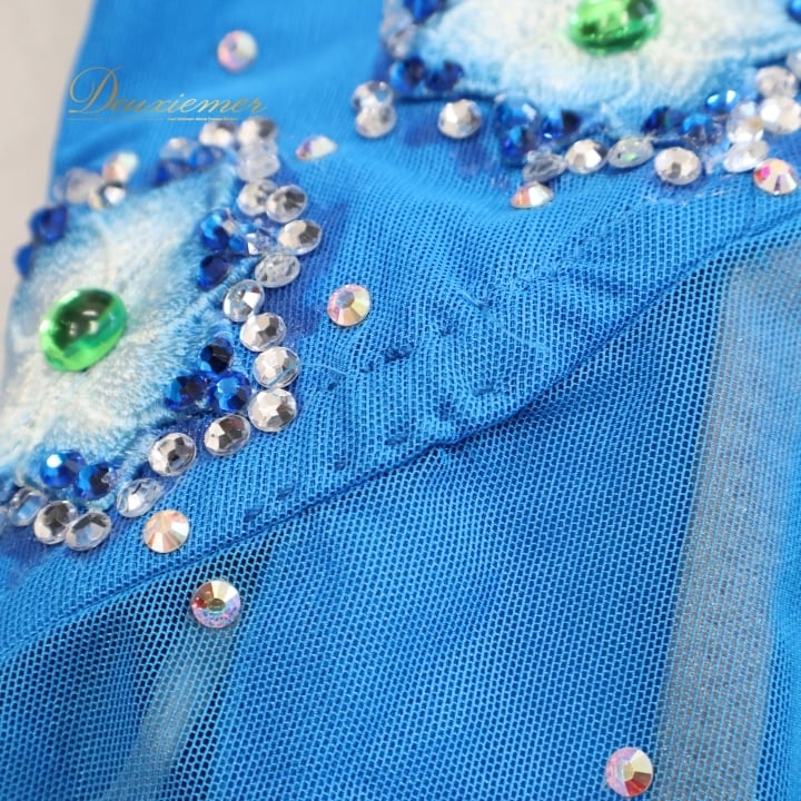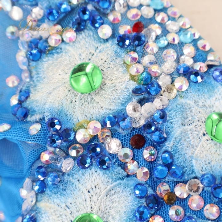 社交ダンス 衣装 白樺ドレス ラテン ドレス ワンピース 青 デモ 競技 ダンス パーティ 発表会 ブルー系 フロア映え スタイリッシュ かっこいい おしゃれ 高級感 デザイン ドレスアップ 舞台用 コスチューム パフォーマンス 競技用 ダンス衣装 レディース