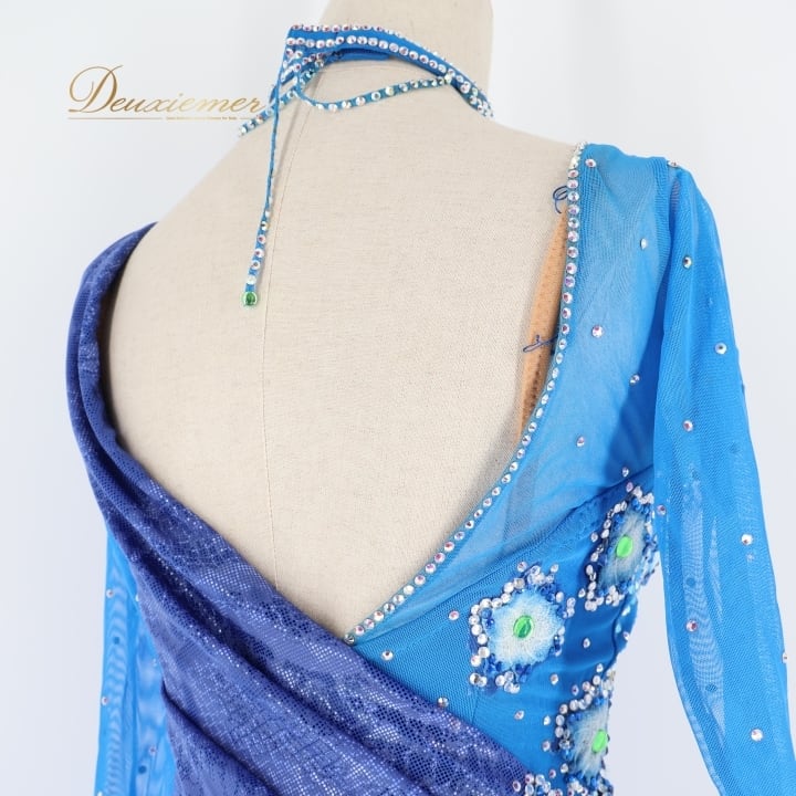 #社交ダンス #ラテンダンス #ダンスドレス #ダンス衣装 #社交ダンス衣装 #青いドレス #スタイリッシュ #ワンピース #ダンスファッション #ダンススタイル #ドレスコーデ #フロア映え #ポリエステル100 #肩パッド無し #胸パッドあり #男女兼用 #ダンスパフォーマンス #ファッション #衣装選び #ENUTSU