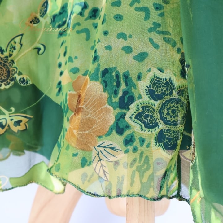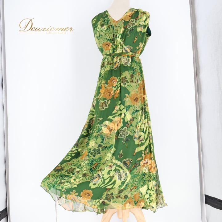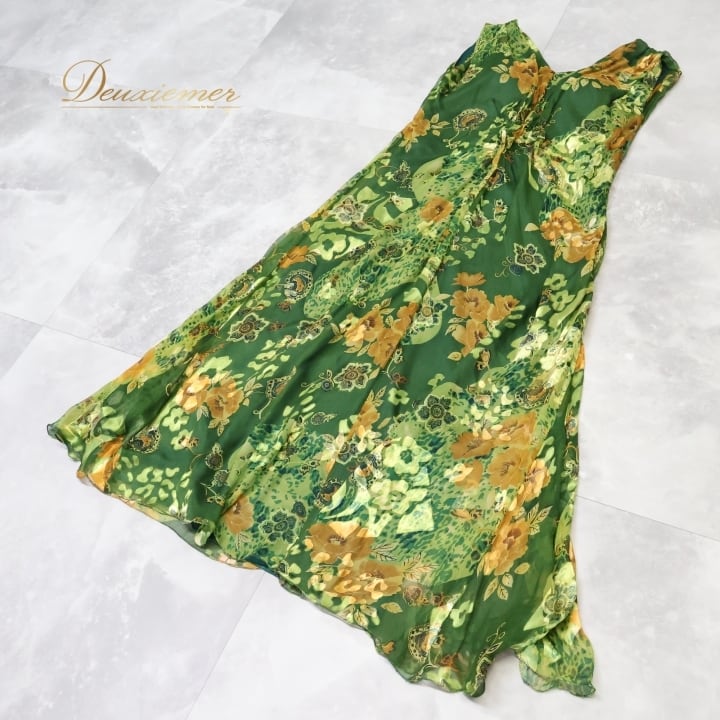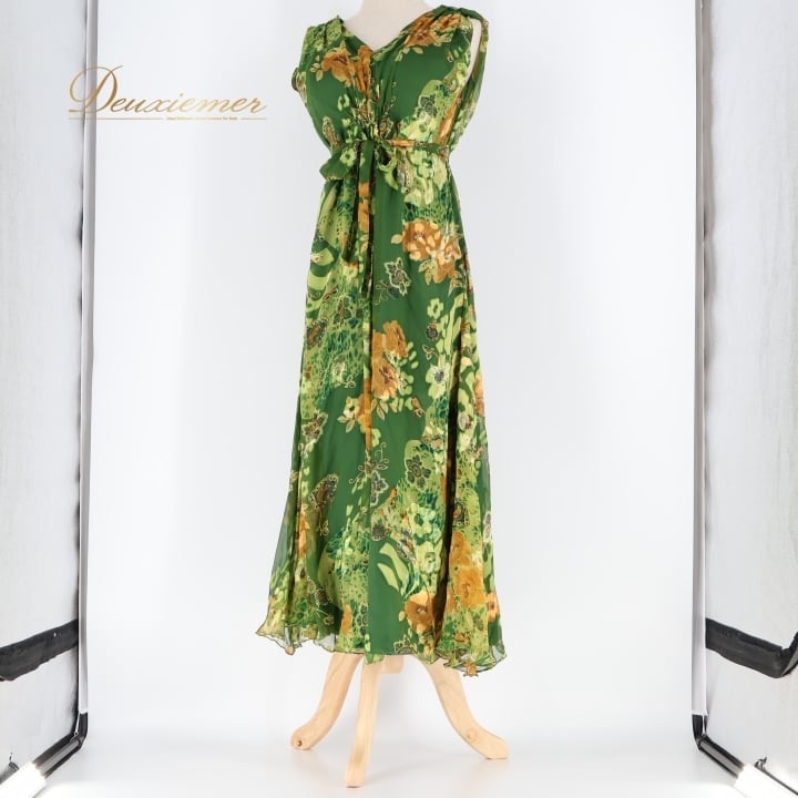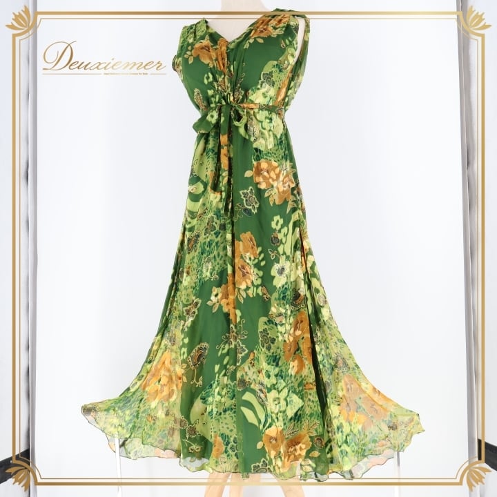 社交ダンス 衣装 ジャンティ gentil ワンピース ドレス 花柄 軽い 薄い パーティドレス 発表会 綺麗 上品 緑 カーキ グリーン系 発表会衣装 フレアスカート フラワープリント サイドスリット 大人可愛い バースデーパーティー 軽やか おしゃれカジュアル 女性用ドレス ふんわり揺れる スタイリッシュ