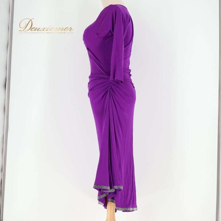 社交ダンス 衣装 ジャンティ gentil ラテン ドレス ワンピース 紫 無地 伸縮 日本製 ストレッチ パーティドレス 発表会 デモ リメイク パープル系 大人っぽい 踊りやすい スタイリッシュ ダンスウェア
