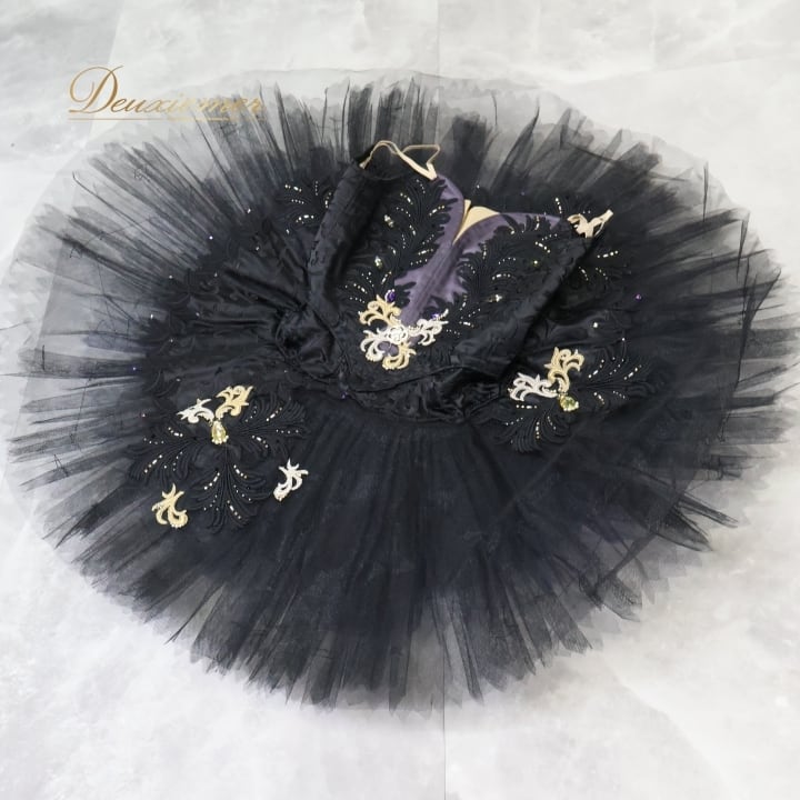 バレエ 衣装 チュチュ 黒鳥 白鳥の湖 黒 コンクール 発表会 ジュニア チュール ダンス パーティ ゴールド 金 ブラック系 バレエ衣装 チュチュ黒 コンクールドレス 発表会用 ダンスコスチューム ブラックチュチュ 子供用ダンス衣装 ゴールド刺繍