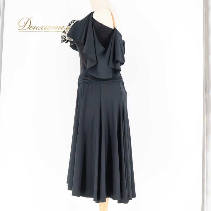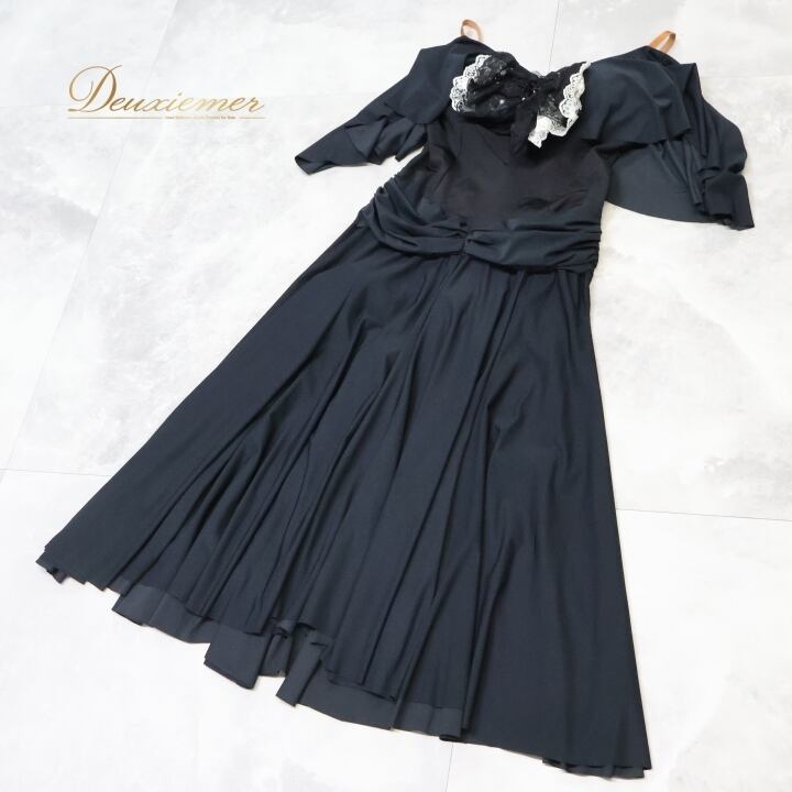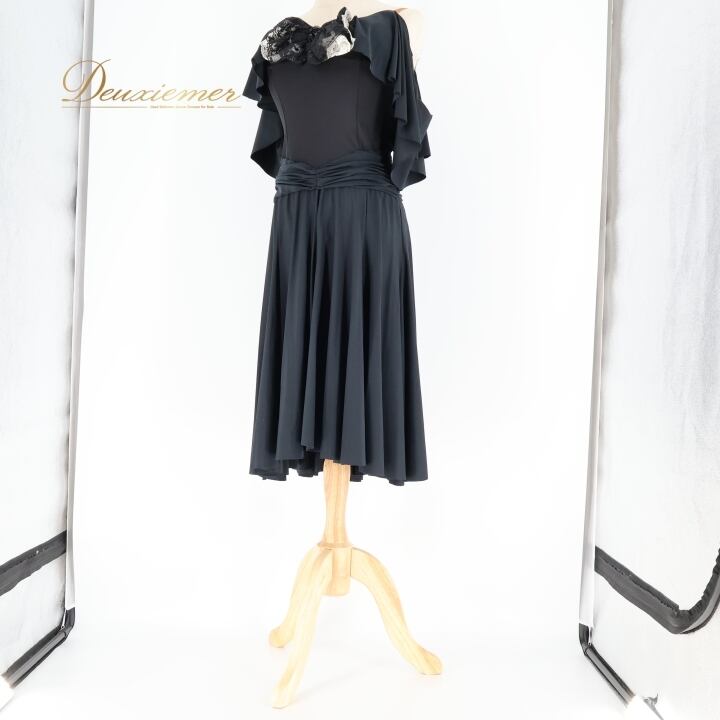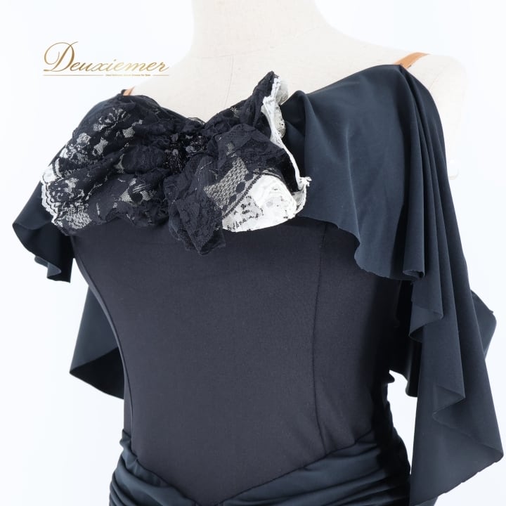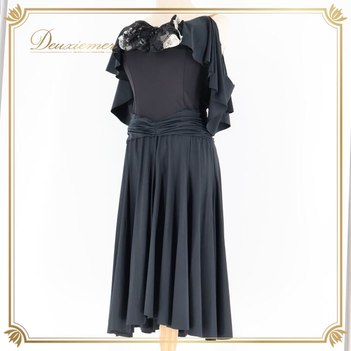 社交ダンス 衣装 ジャンティ gentil ラテン ドレス ワンピース 黒 レース 日本製 伸縮 軽い ストレッチ パーティドレス 発表会 無地 ブラック系 踊りやすい シンプル おしゃれ フォーマル パーティー 大人向け レディース Mサイズ 薄手 日本製製品 ダンス衣装 黒無地 コスチューム パフォーマンス用