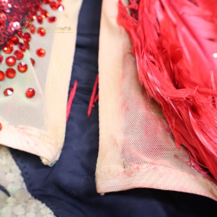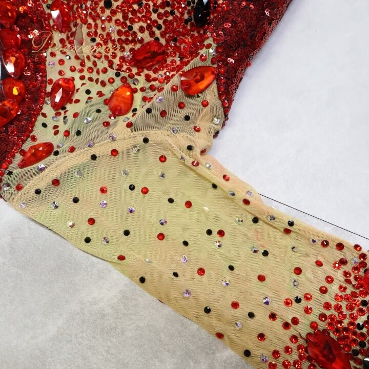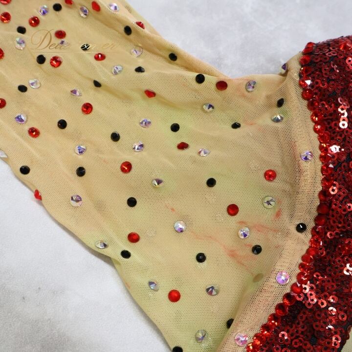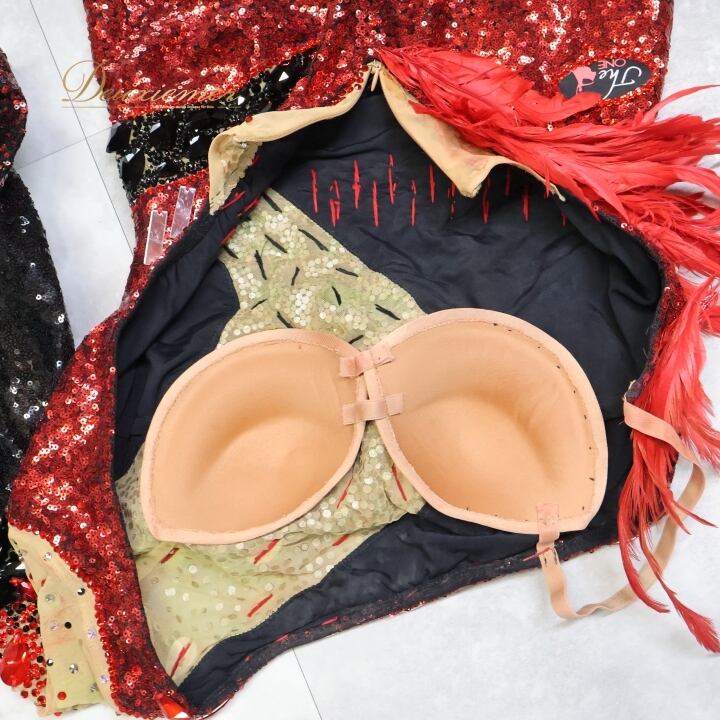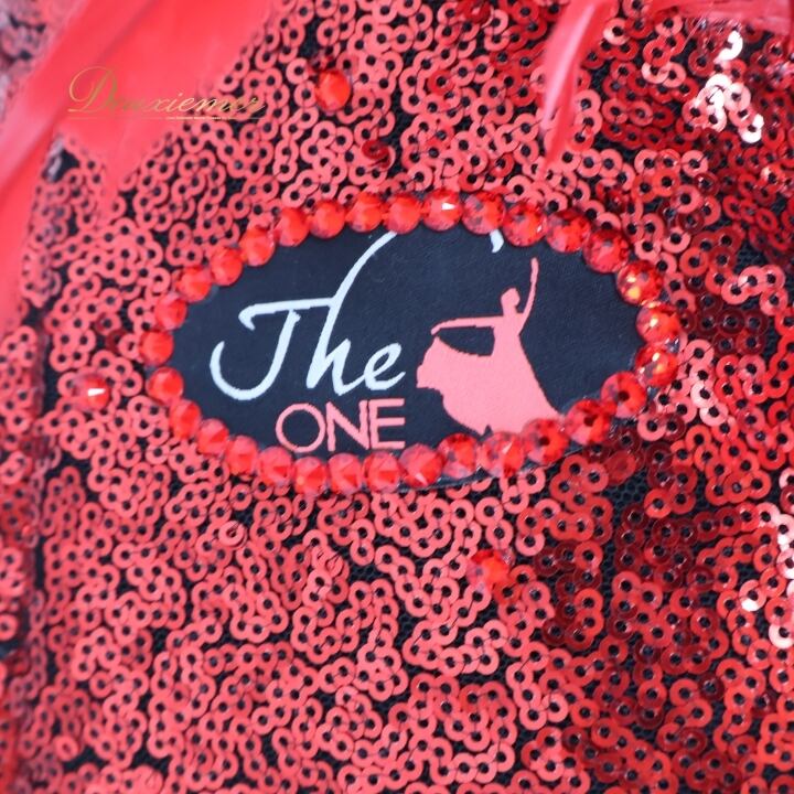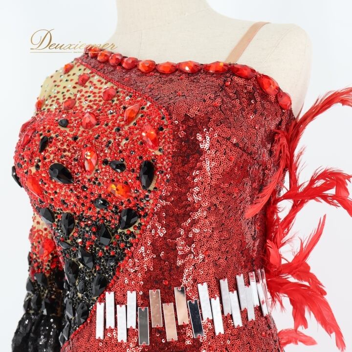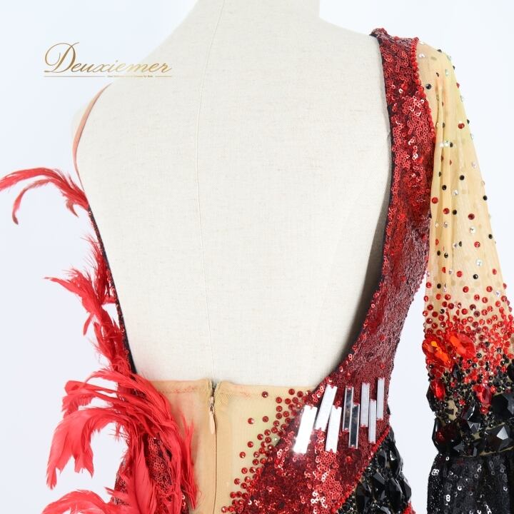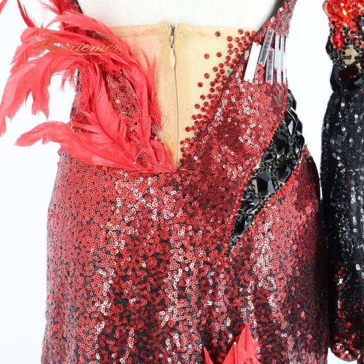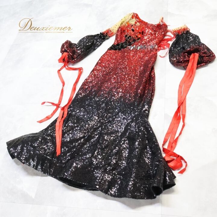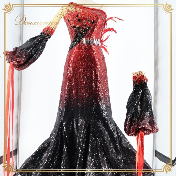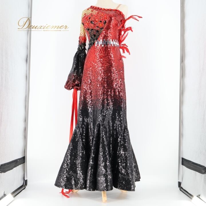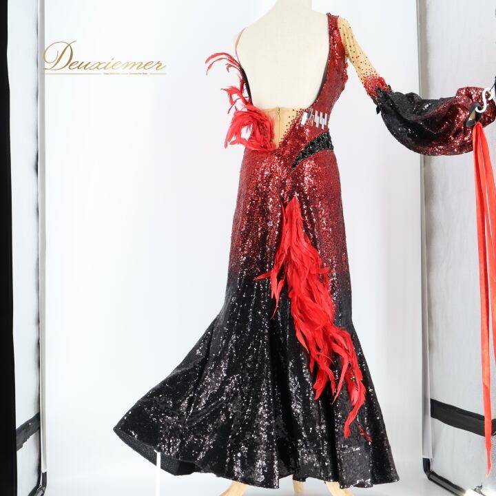 社交ダンス 衣装 THE ONE ザワン スタンダードドレス ドレス ワンピース フロート デモ 競技 ダンス スパンコール 赤 黒 フロート リボン ブラック系 レッド系 華やか 大人 女性用 輝き おしゃれ パーティー 競技用 ステージ衣装 ダンスパフォーマンス