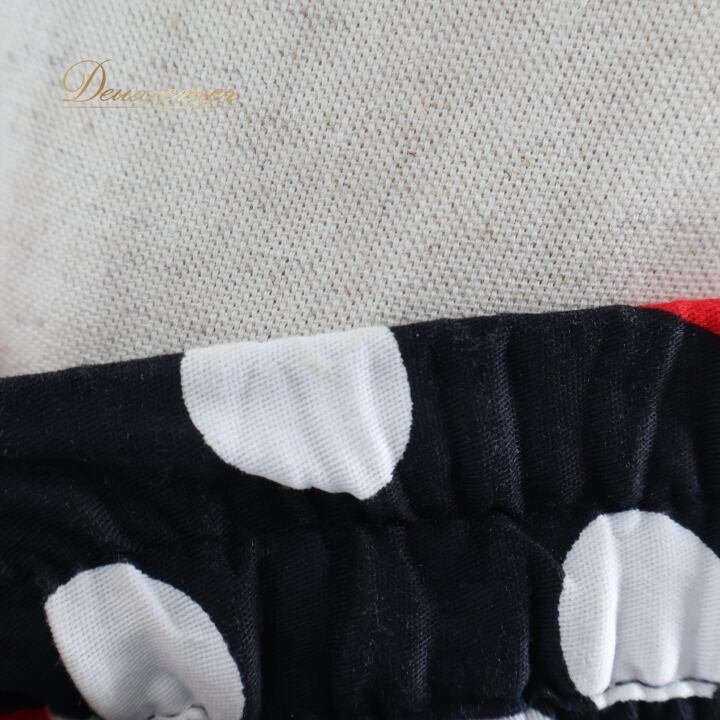 ▽ドット×花柄が賑やかなデザイン