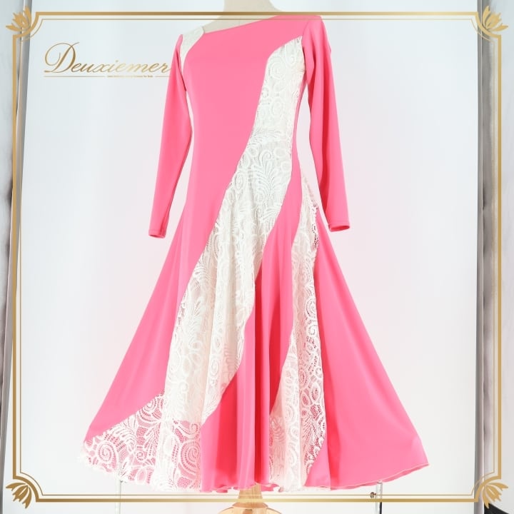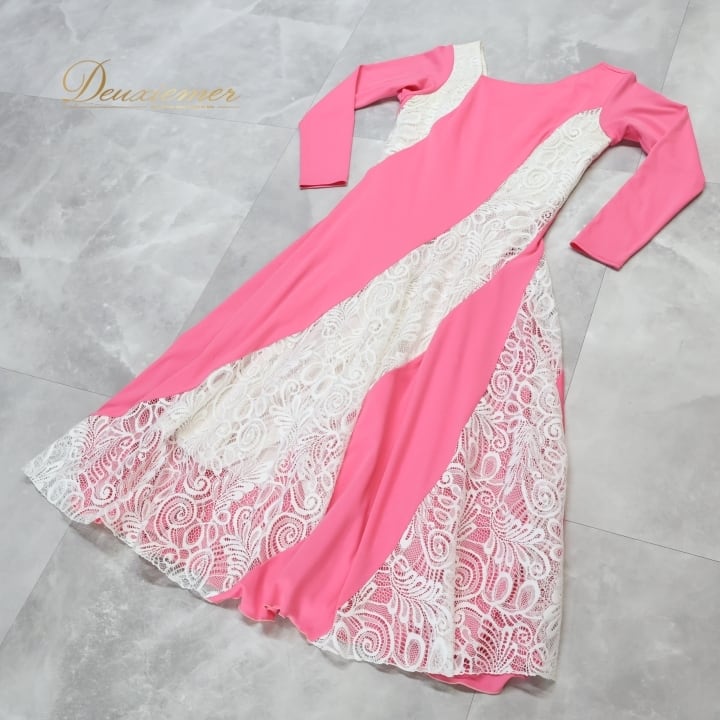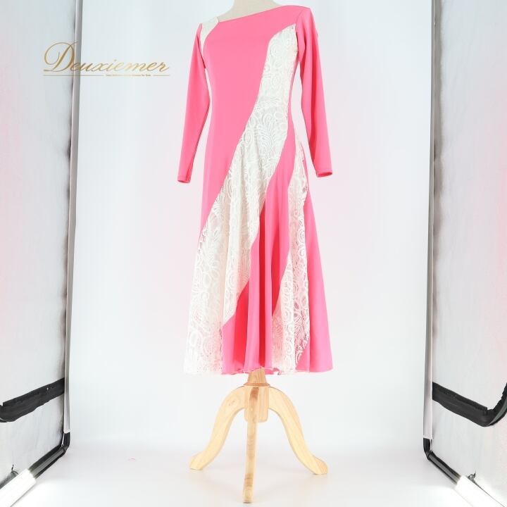 #社交ダンス #衣装 #ワンピース #ドレス #ダンスウェア #ダンス衣装 #Mサイズ #日本製 #ピンク #白 #柔らかい生地 #ファスナー #伸縮性 #トルソー #女性用 #コスチューム #ダンスパーティー #おしゃれ #カジュアルダンス #ENUTSU