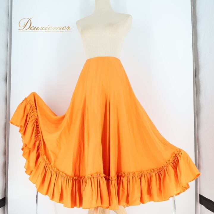 フラメンコ 衣装 ペチコート ファルダ スカート オレンジ ボランテ フリル 無地 軽い 薄い Eve by takemi イヴバイタケミ オレンジ系 発表会 パーティ スカート フラメンコ衣装 軽やか ペチコートスカート おしゃれ コーディネート レディース フリルデザイン イベント用