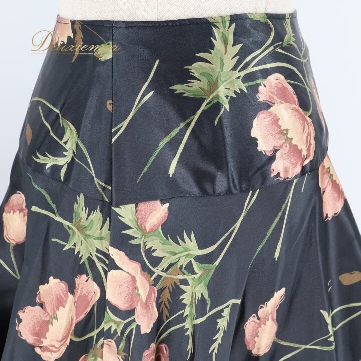 フラメンコ 衣装 ファルダ ペチコート スカート 花柄 黒 緑 光沢 くすみ 軽い 薄い ダンス パーティ 発表会 ブラック系 ブラウン系 グリーン系 ロングスカート フェミニン ステージ衣装 エレガント ファッション シンプル おしゃれ