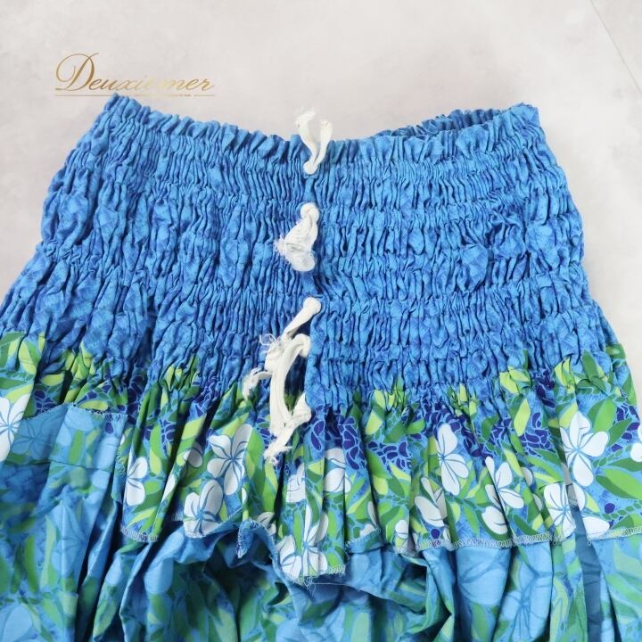 #フラダンス #パウスカート #ブルー #プルメリア #ウエストゴム #ダンス衣装 #ハワイアン #フラ #コスチューム #夏ファッション #リゾートスタイル #民族衣装 #手作り #おしゃれ #フラガール #ウェストサイズ #ダンススカート #かわいい #ファッション #ENUTSU