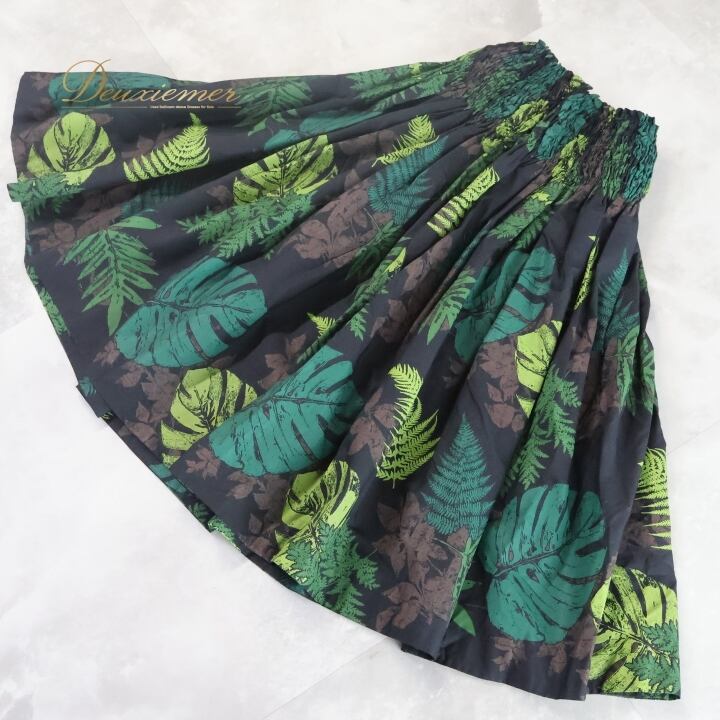 フラダンス 衣装 パウスカート ブラック系 モンステラ柄 ハワイアンプリント アロハ フラ ダンス レッスン 練習 シングル スカート かわいい おしゃれ 上品 大人っぽい 華やか 軽やか ふんわり グリーン系 ブラウン系 黒 緑 黄緑 茶 フラ ダンス フェミニン リゾートスタイル キュート カジュアル シャーリング アロハスタイル ハワイファッション エレガント