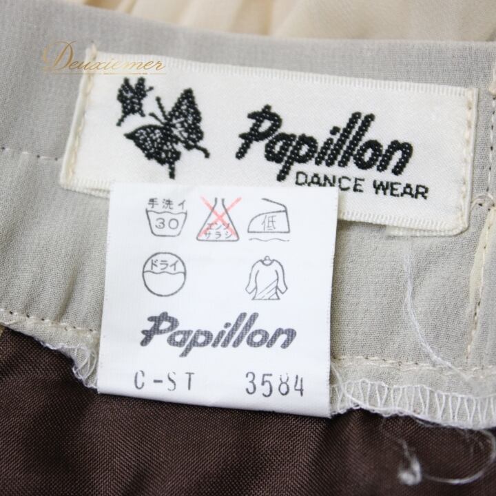 社交ダンス 衣装 スタンダード スカート レッスンウェア オフホワイト系 ブラウン系 アイボリー PAPILLON パピヨン プリーツ 無地 シンプル ポリエステル スポーツ ダンスウェア フォーマル サイズM おしゃれ かわいい 女性用 シンプルコーデ 薄手 軽やか プレゼント おすすめ フレア 動きやすい