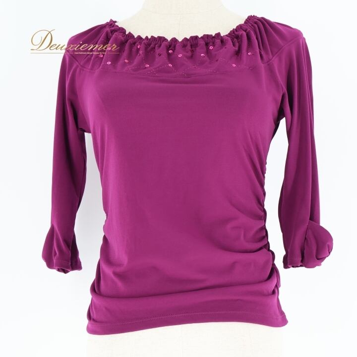 #社交ダンス #ダンス衣装 #ダンスブラウス #Chacott #チャコット #紫色 #おしゃれ #女性ファッション #リボンデザイン #トルソー #ストレッチ #ダンスウェア #ダンストップス #フィットネス #パフォーマンス #ダンス好き #ダンススタイル #舞台衣装 #衣装コーディネート #ENUTSU