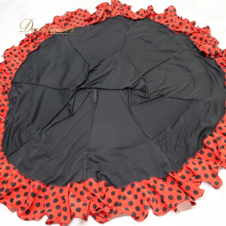 フラメンコ 衣装 ファルダ スカート 黒 赤 ボランテ フリル ドット 水玉 レッスン 練習着 ダンス パーティ 発表会 prima boutique プリマブティック ブラック系 レッド系 ステージ衣装 可愛い スカート おしゃれ 舞台用 衣装フェスティバル
