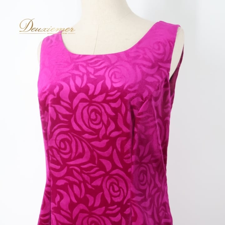 フラダンス 衣装 ワンピース ドレス パープル系 アロハスタンダード 日本製 バラ柄 花柄 ハワイアン アロハ ベロア フラ ダンス レッスン 練習 ALOHA STANDARDS ノースリーブ 華やか 鮮やか かわいい おしゃれ 上品 高級感 大人っぽい フレアデザイン フラワー エレガント リゾート 美しい