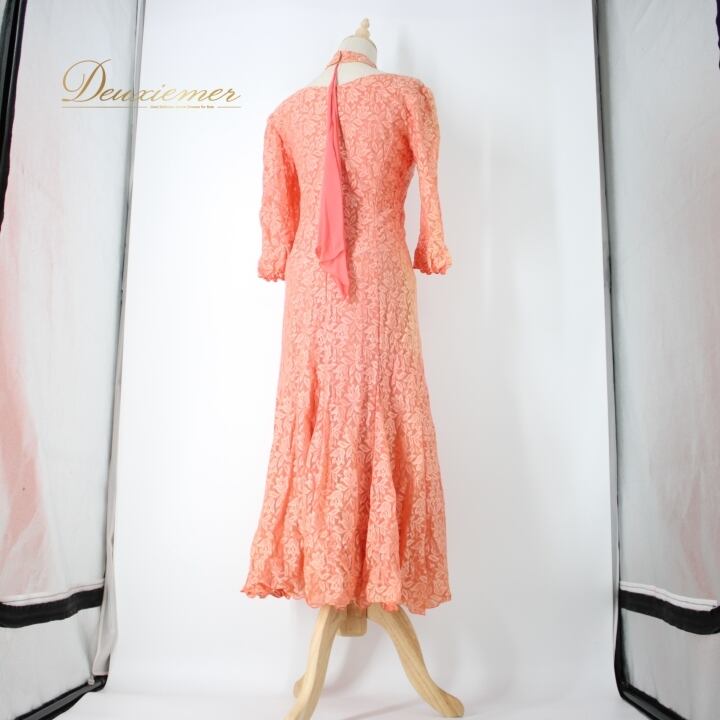 #社交ダンス #ダンス衣装 #ドレス #コーラルオレンジ #花柄レース #ラインストーン #フォーマル #衣装 #ダンスファッション #オーダーメイド #ママダンス #社交ダンス衣装 #女性用 #競技ダンス #ダンスイベント #ダンススタイル #ファッション #美しい #トルソー #ENUTSU