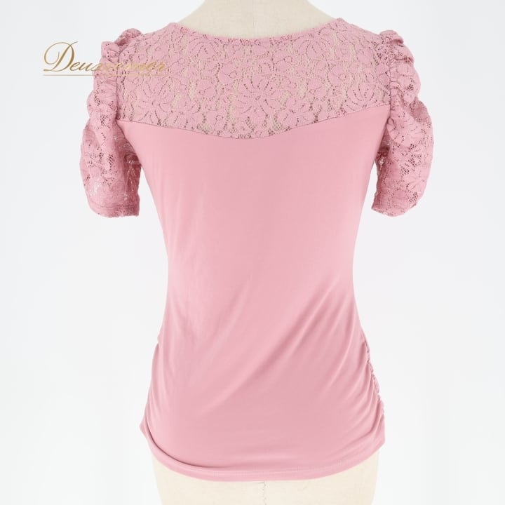 社交ダンス 衣装 トップス ブラウス ピンク系 チャコット Chacott シンプル 花柄 レース 伸縮 ストレッチ 練習 レッスン 半袖 くすみピンク かわいい 上品 淡い ダンス衣装 パーティー