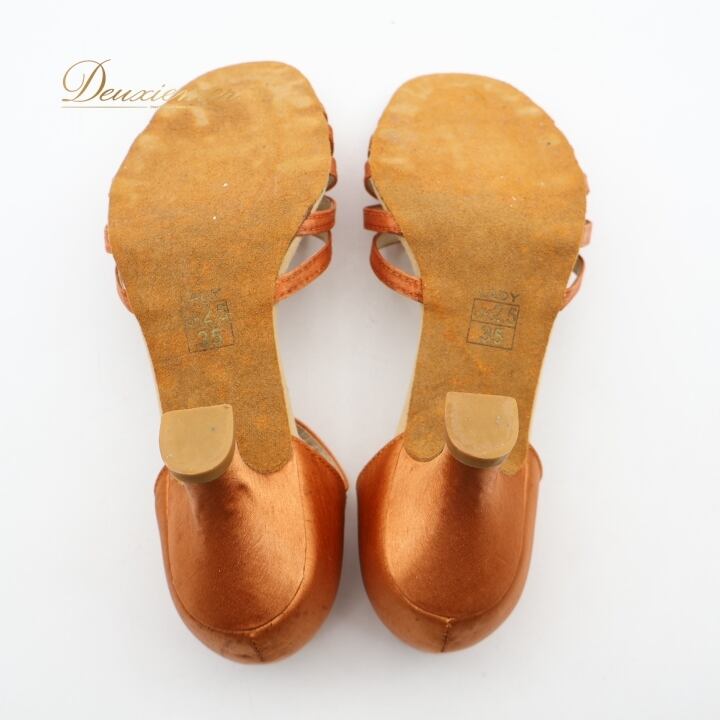 社交ダンス 衣装 ラテン シューズ uk2.5 35サイズ ブラウン系 靴 くつ 茶 光沢 レディース 明るい ダンスシューズ ストラップ ヒール シンプル かわいい 上品 ステージ イベント レッスン 練習 パーティー