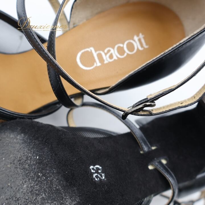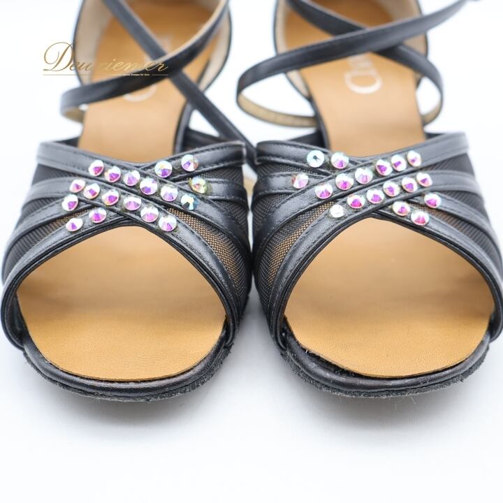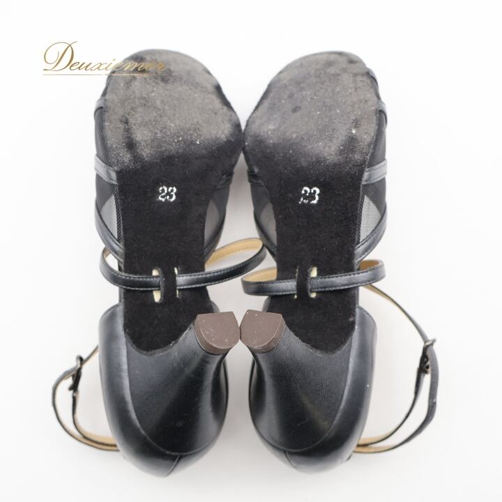 社交ダンス 衣装 ラテン シューズ 23サイズ ブラック系 チャコット Chacott ラインストーン メッシュ 黒 キラキラ ストラップ ダンスシューズ 上品 かわいい 練習 レッスン パーティー イベント ステージ