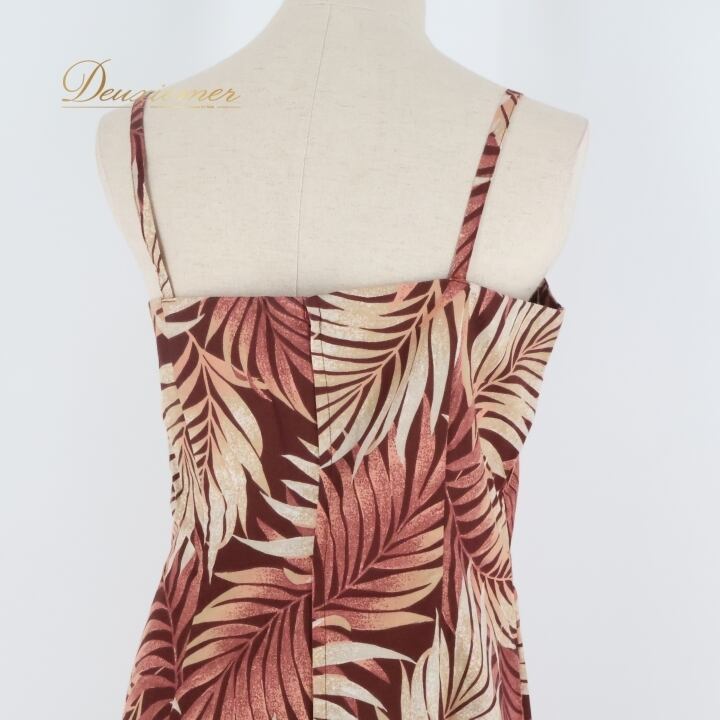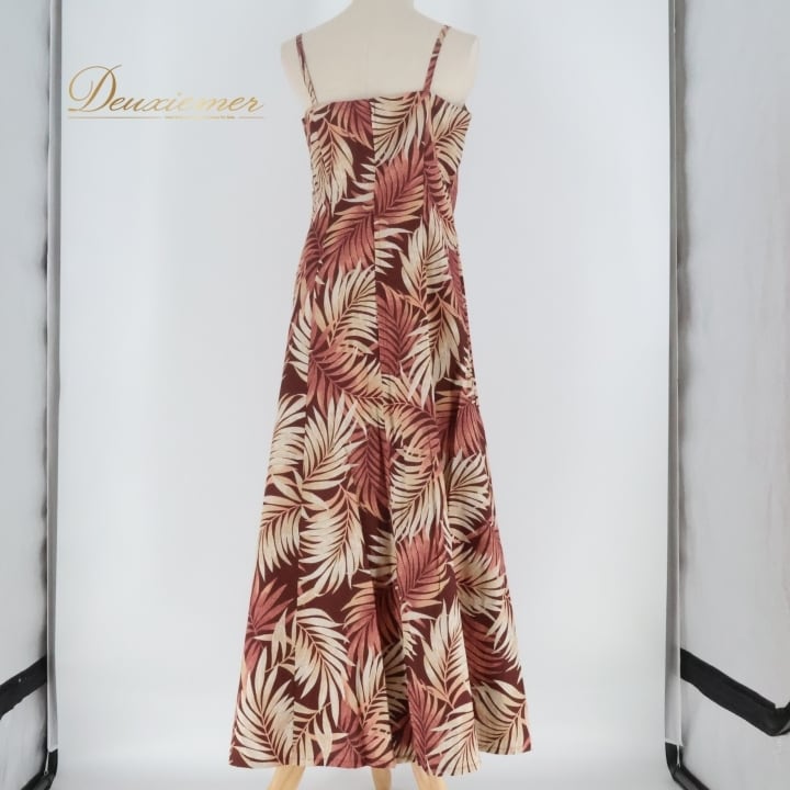 フラダンス 衣装 ワンピース ドレス ブラウン系 アロハスタンダード 日本製 パームリーフ柄 ハワイアンプリント アロハ ALOHA STANDARDS 植物柄 ボタニカル ベージュ系 茶 レッスン 練習 フラ ダンス キャミソール 華やか 大人っぽい 上品 おしゃれ かわいい ブラウン カジュアル 軽やか スタイリッシュ